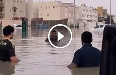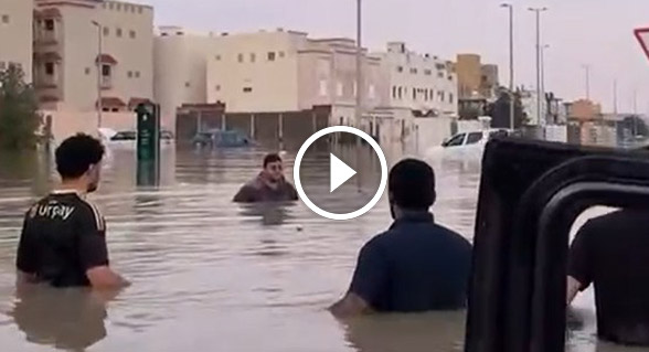 العاصفة ليست في بلادنا فقط.. شاهدوا: سيول جارفة وسيارات عائمة في جدة
