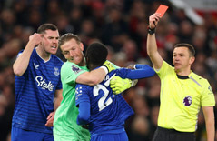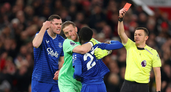 أغرب بطاقة حمراء في التاريخ.. طرد لاعب إيفرتون لاشتباكه مع زميله