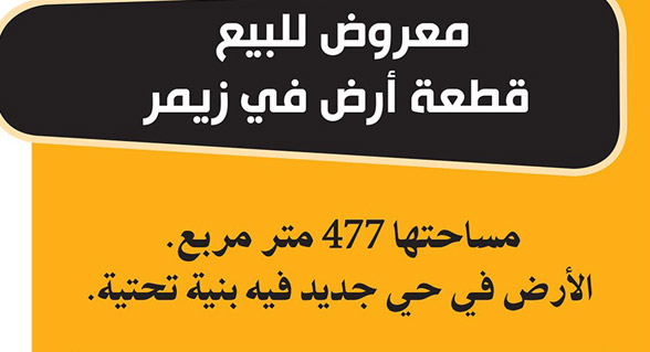 (ممول) معروض للبيع قطعة أرض في زيمر