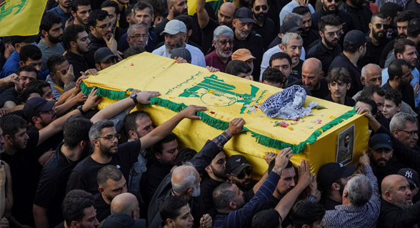 حشود بالضاحية الجنوبية لبيروت تشيع القائد العسكري في حزب الله هيثم علي الطبطبائي و 4 اخرين