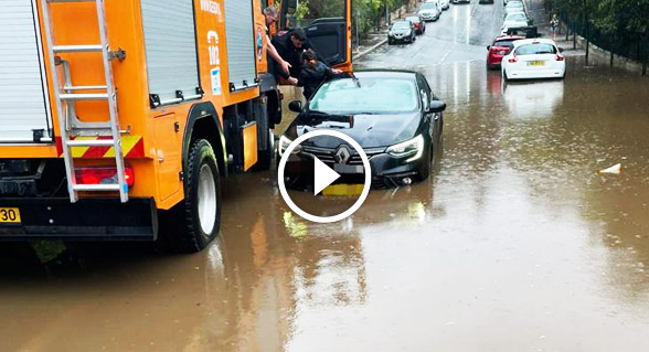 شاهدوا: تخليص أشخاص عليقوا داخل سياراتهم وسط سيول الأمطار في منطقة الساحل جنوبي البلاد