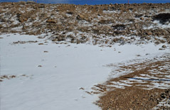 تساقط ثلوج مفاجئ في جبل الشيخ لدقائق معدودة
