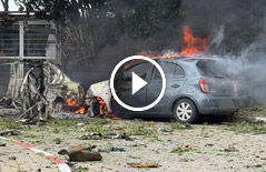 تدمير سيارات وحفرة كبيرة في أحد الشوارع بمنطقة المركز بعد الهجوم الصاروخي
