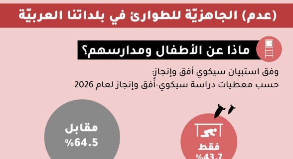 دراسة لجمعيتيْ ‘سيكوي-أُفق‘ و ‘إنجاز‘: فجوات هائلة في جاهزيّة المؤسّسات التّعليميّة العربيّة واليهوديّة لحالات الطوارئ