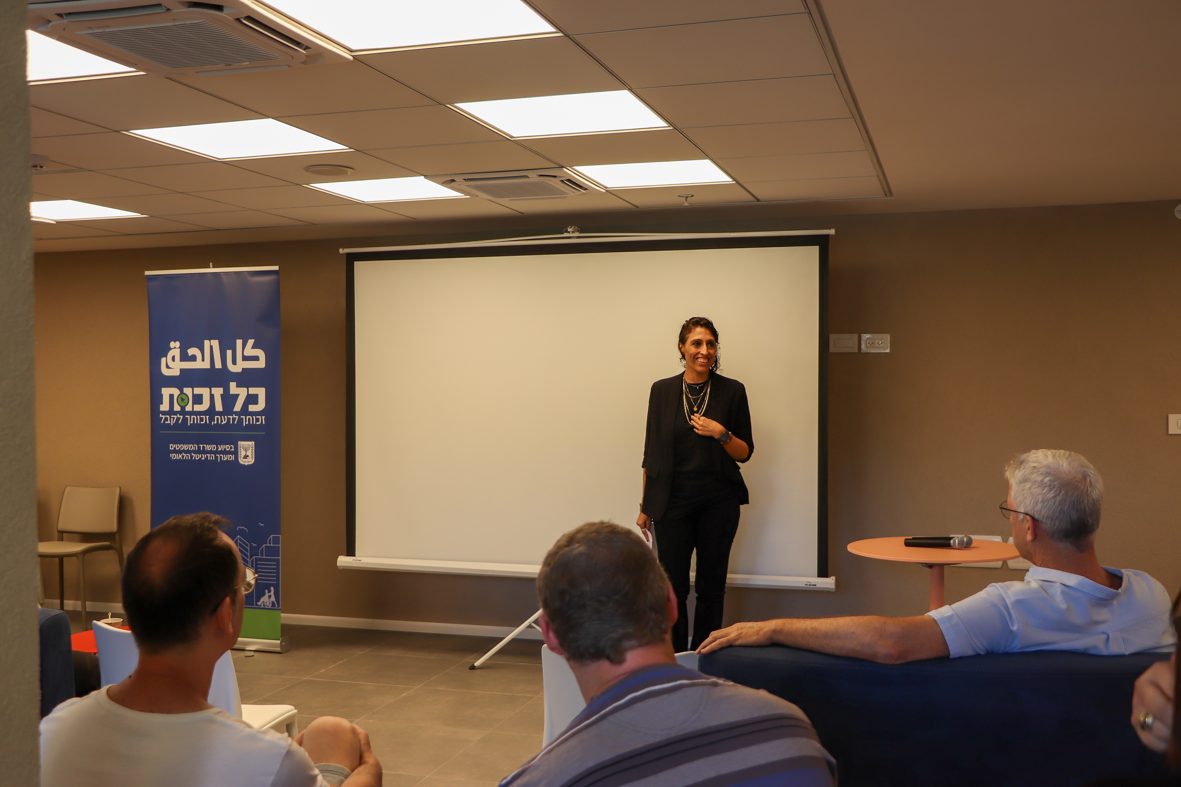 كما ورحب بالحضور شلومي بيلفسكي رئيس الدائرة الحكومية لحرية المعلومات ورئيس المبادرة المشتركة لوزارة القضاء و"كل الحق" الذي استعرض "أهمية المشروع بالنسبة للوزارة واندراجه في باب حرية المعلومة كما وشارك الجمهور اهتمامه الخاص باللغة العربية وأكد على أهميتها".