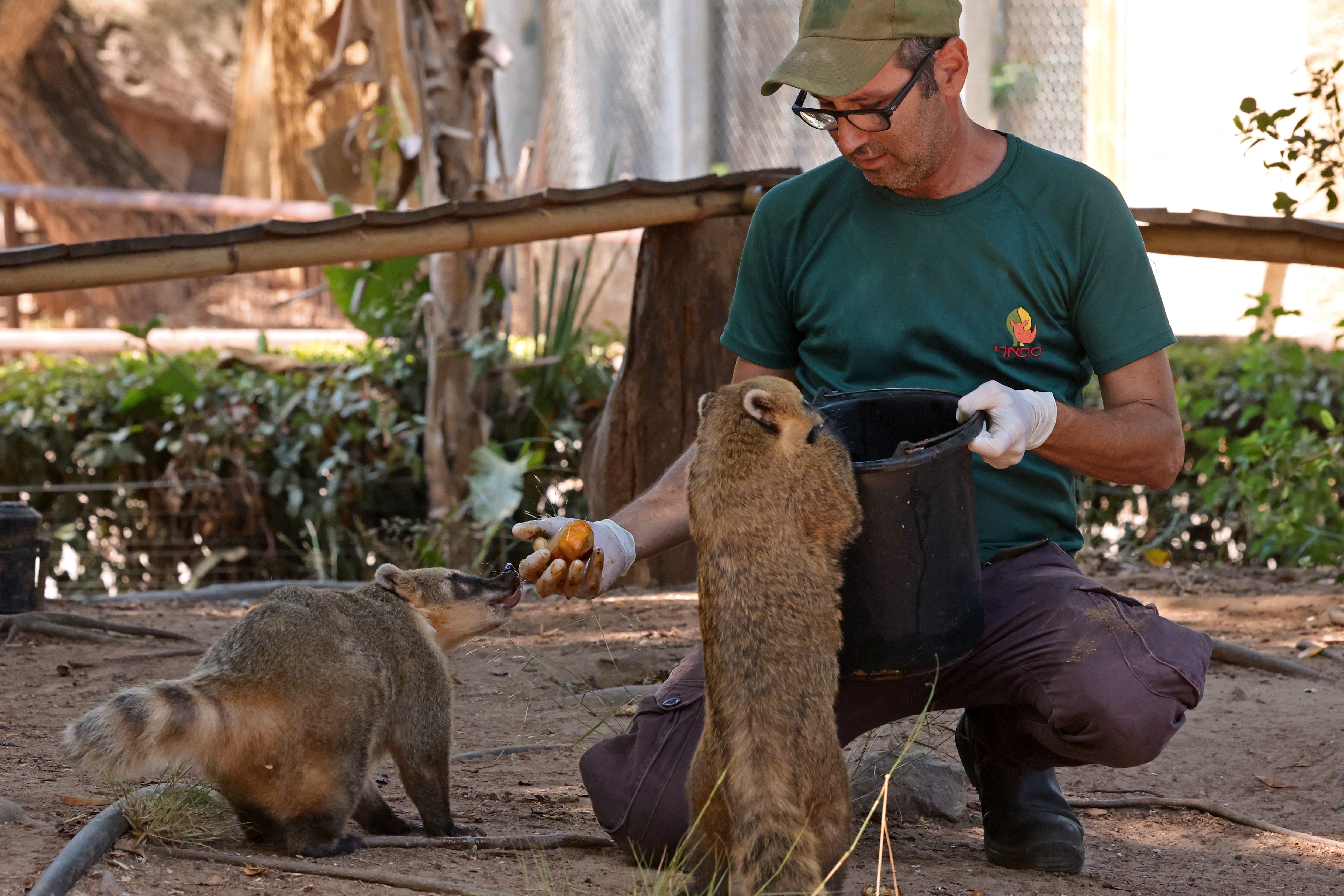 في ظل موجة الحر التي تشهدها البلاد، يحاول العاملون في حديقة الحيوانات " السفاري " في مدينة رمات غان في منطقة المركز، التخفيف من وطأة الحر على الحيوانات