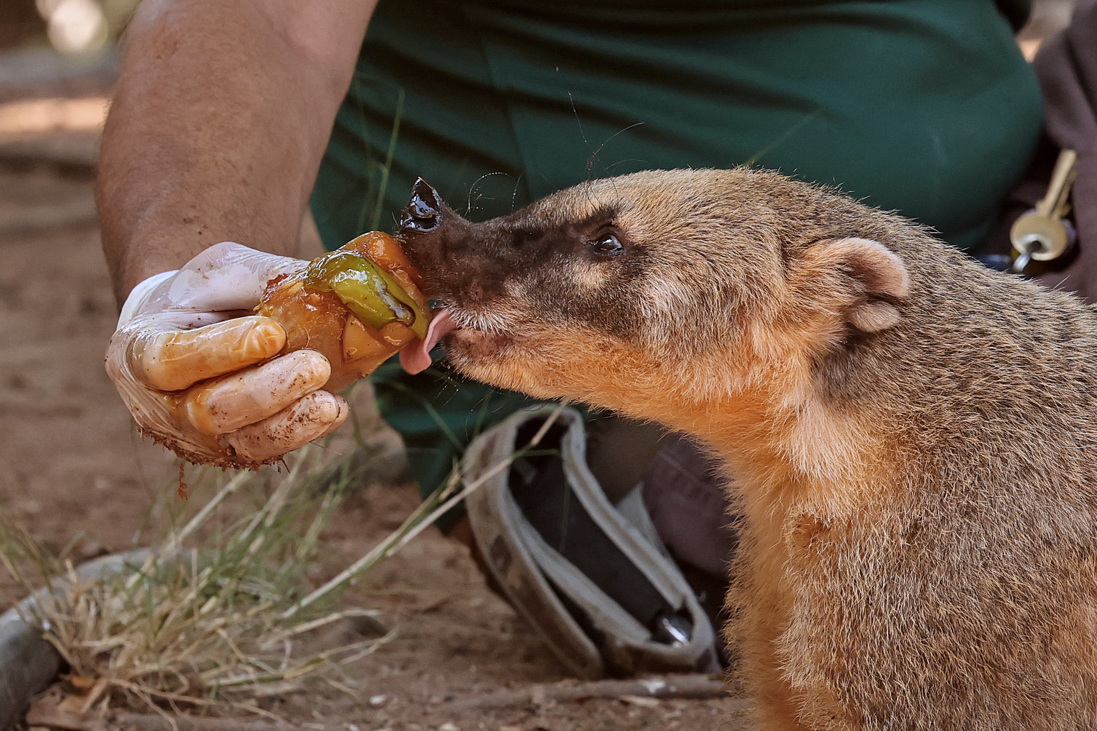 في الحديقة بتقديم المثلجات لها. هذه المثلجات تقدم للأسود مثلا وهي تحتوي على مزيج من البيض واللحوم.