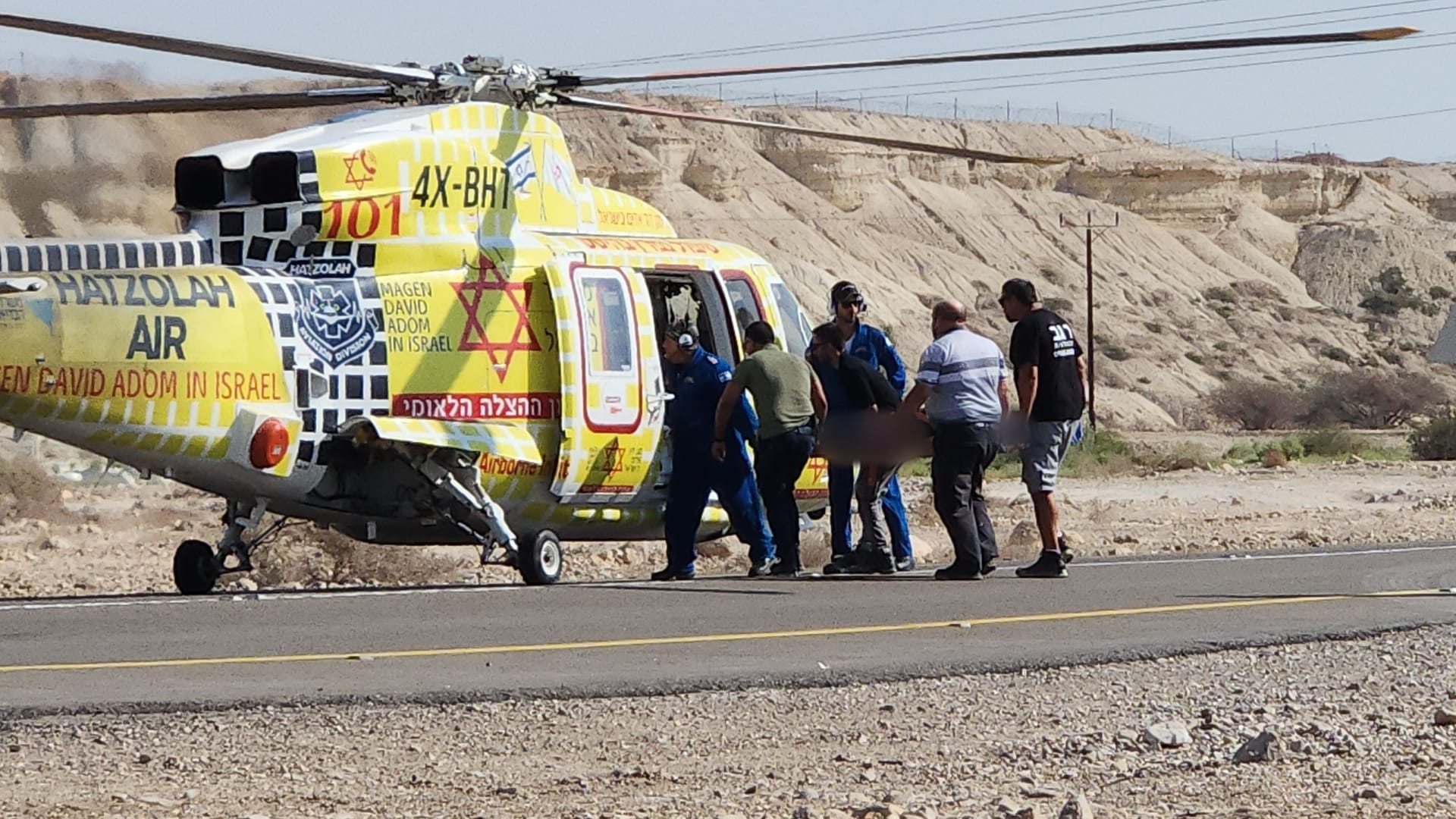 وأفاد مراسل موقع بانيت وصحيفة بانوراما ، أنّ الطاقم الطبي التابع لنجمة داوود الحمراء ، قام بتقديم علاج أولي لمصابة في الخمسين من العمر وصفت اصابتها بالمتوسطة ،ومن ثم تم نقلها بواسطة مروحية طبية لتلقي العلاج في