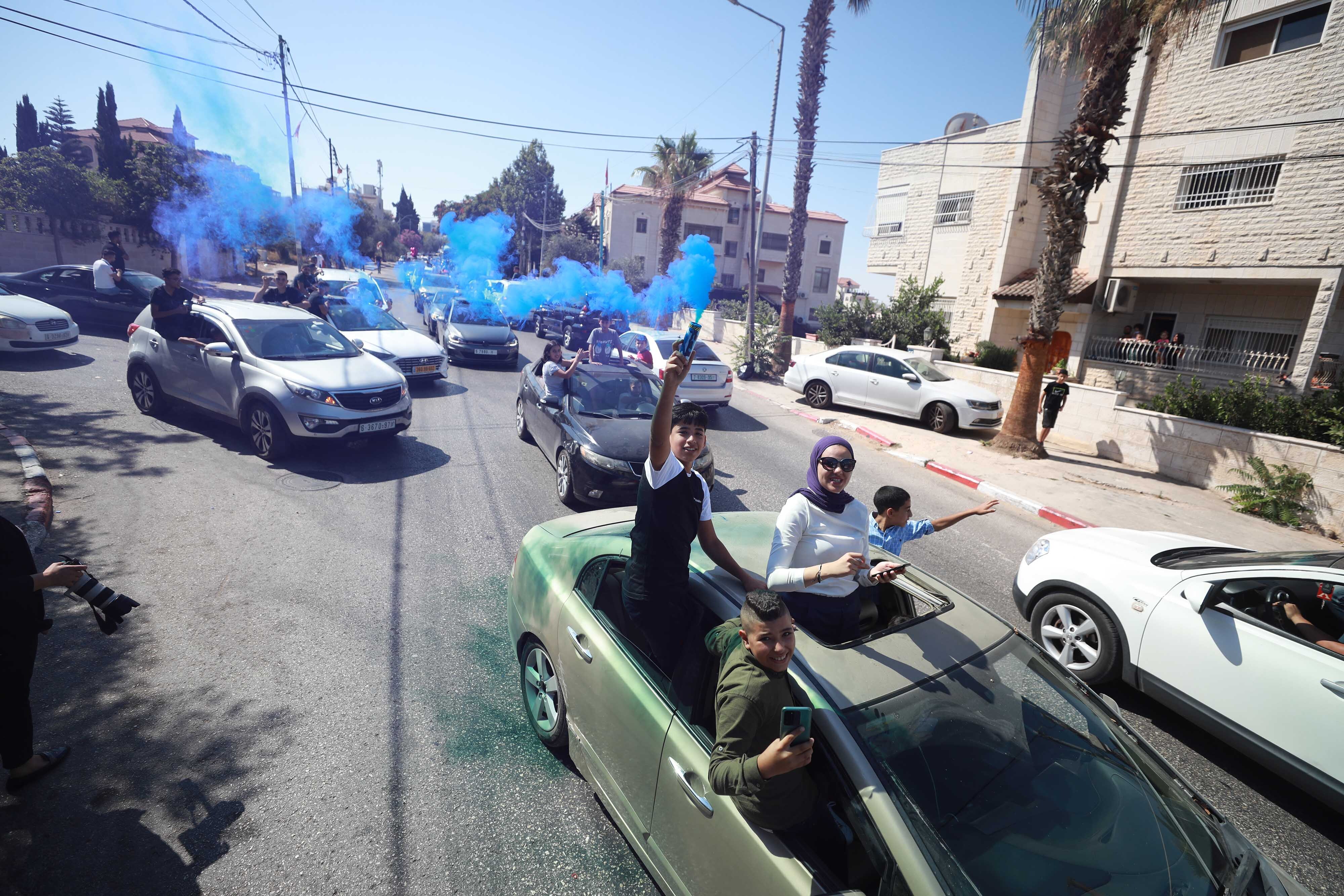 (Photo by Issam Rimawi/Anadolu Agency via Getty Images) - صورة من الأرشيف لاحتفالات التوجيهي