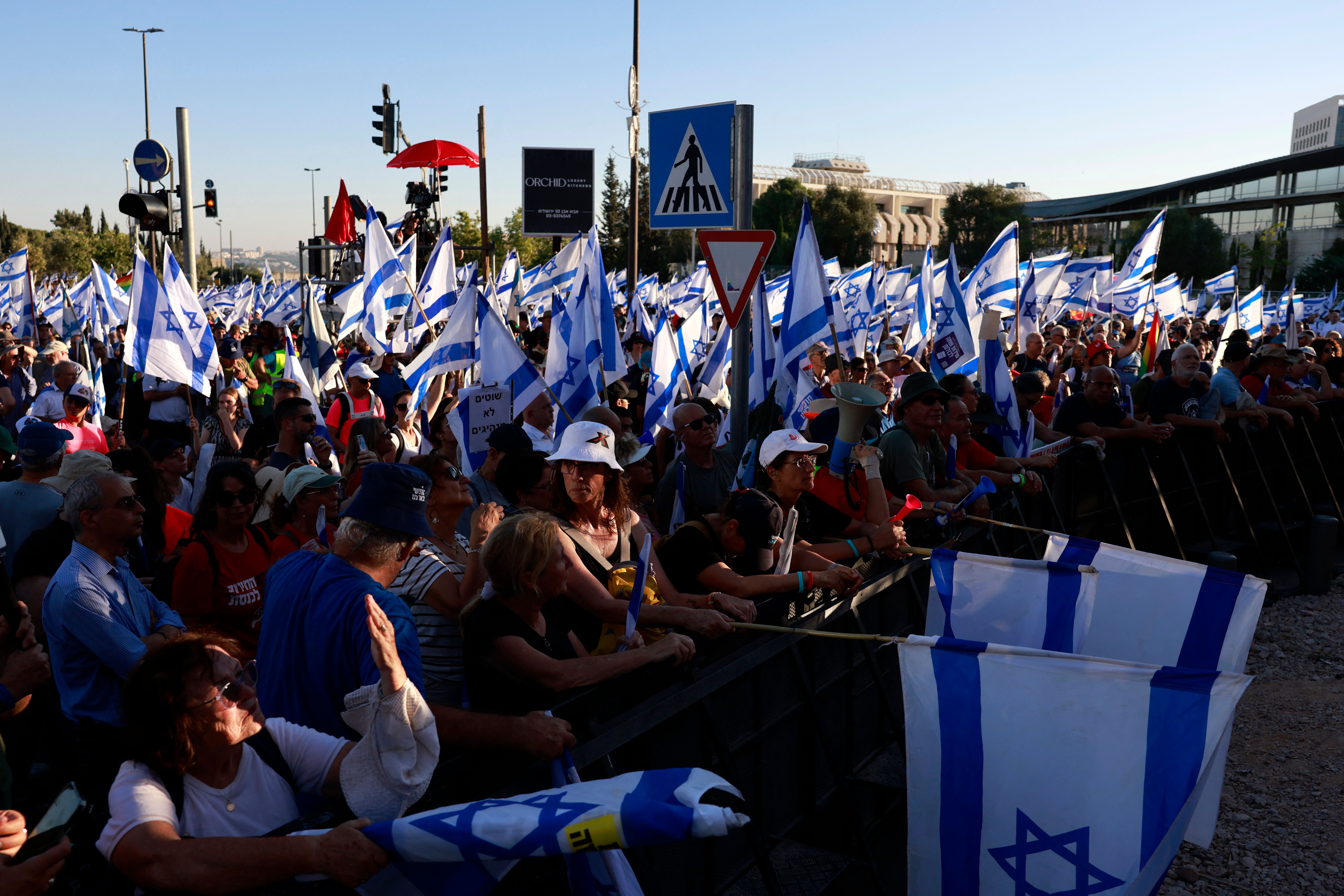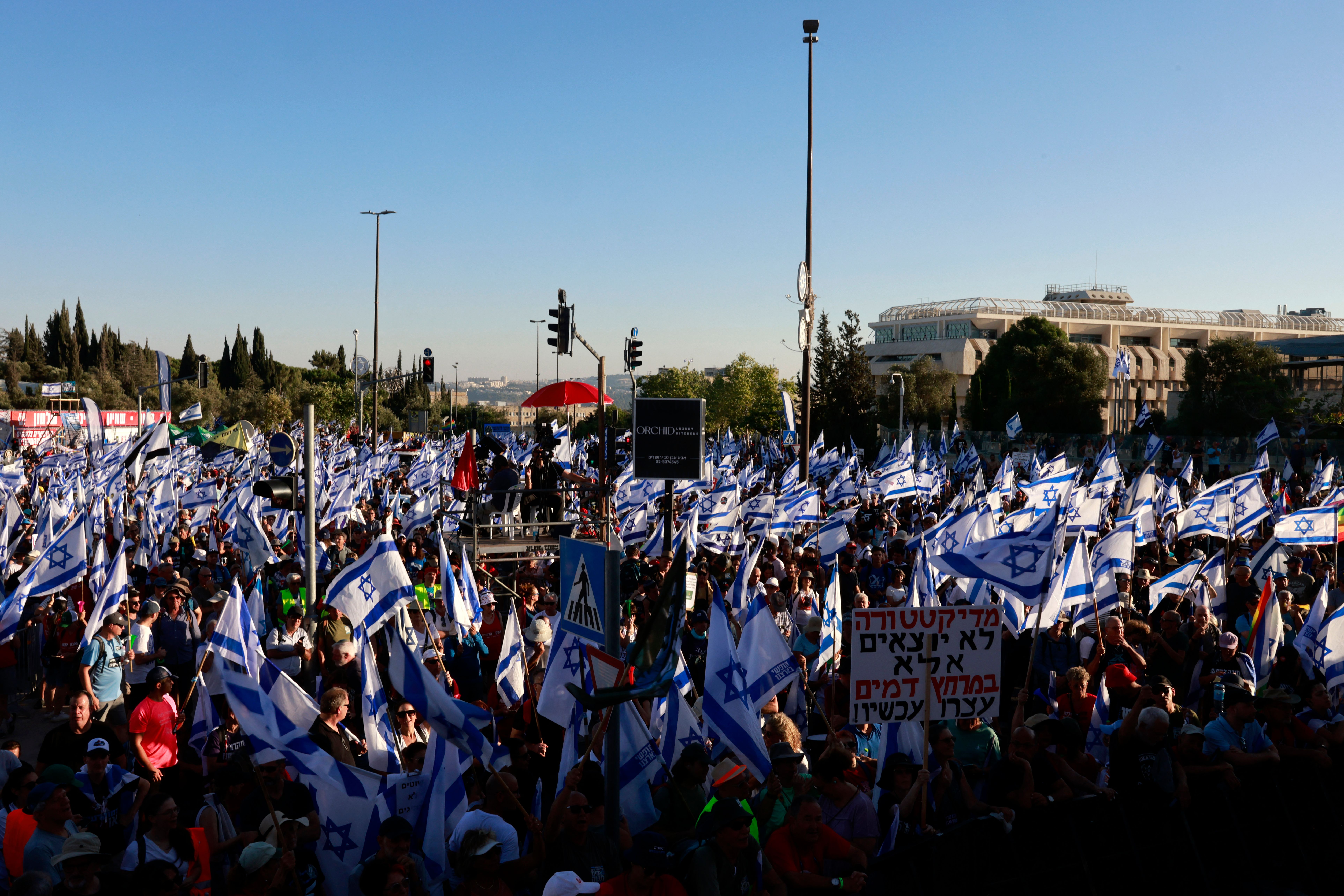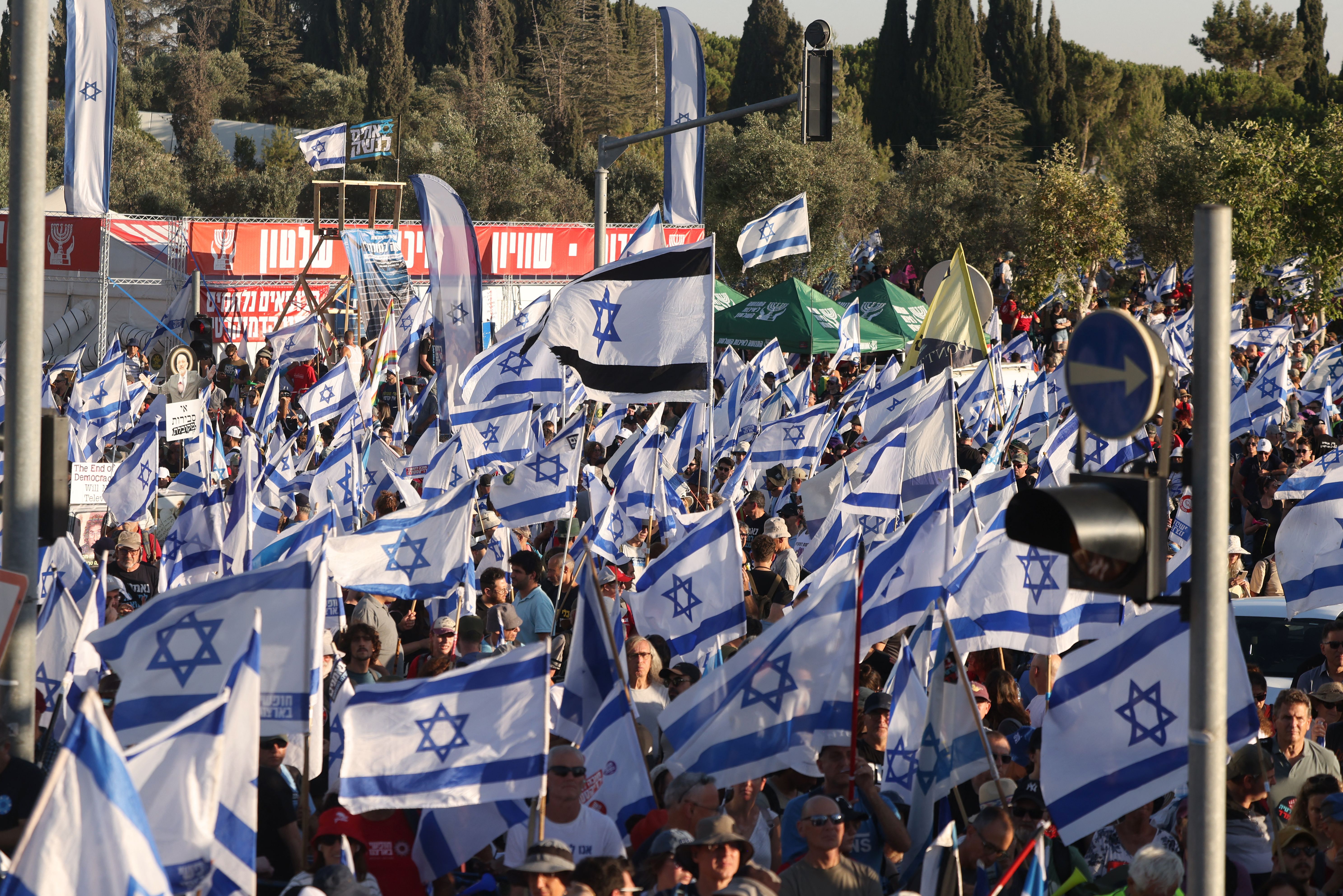 هذا وأعلنت شبكة المجمعات التجارية " كنيونات " عزرائيلي ومراكز بيج التجارية وجميع الشركات التي تنضوي تحت اطار " منتدى الاعمال " البالغ عددها حوالي 150 شركة - أعلنت عن الاضراب اليوم الاثنين احتجاجا على مضي الحكومة قدما في التشريعات القضائية ، مطالبين بالتوصل الى تفاهمات وصيغة توافقية للتشريعات القضائية .
