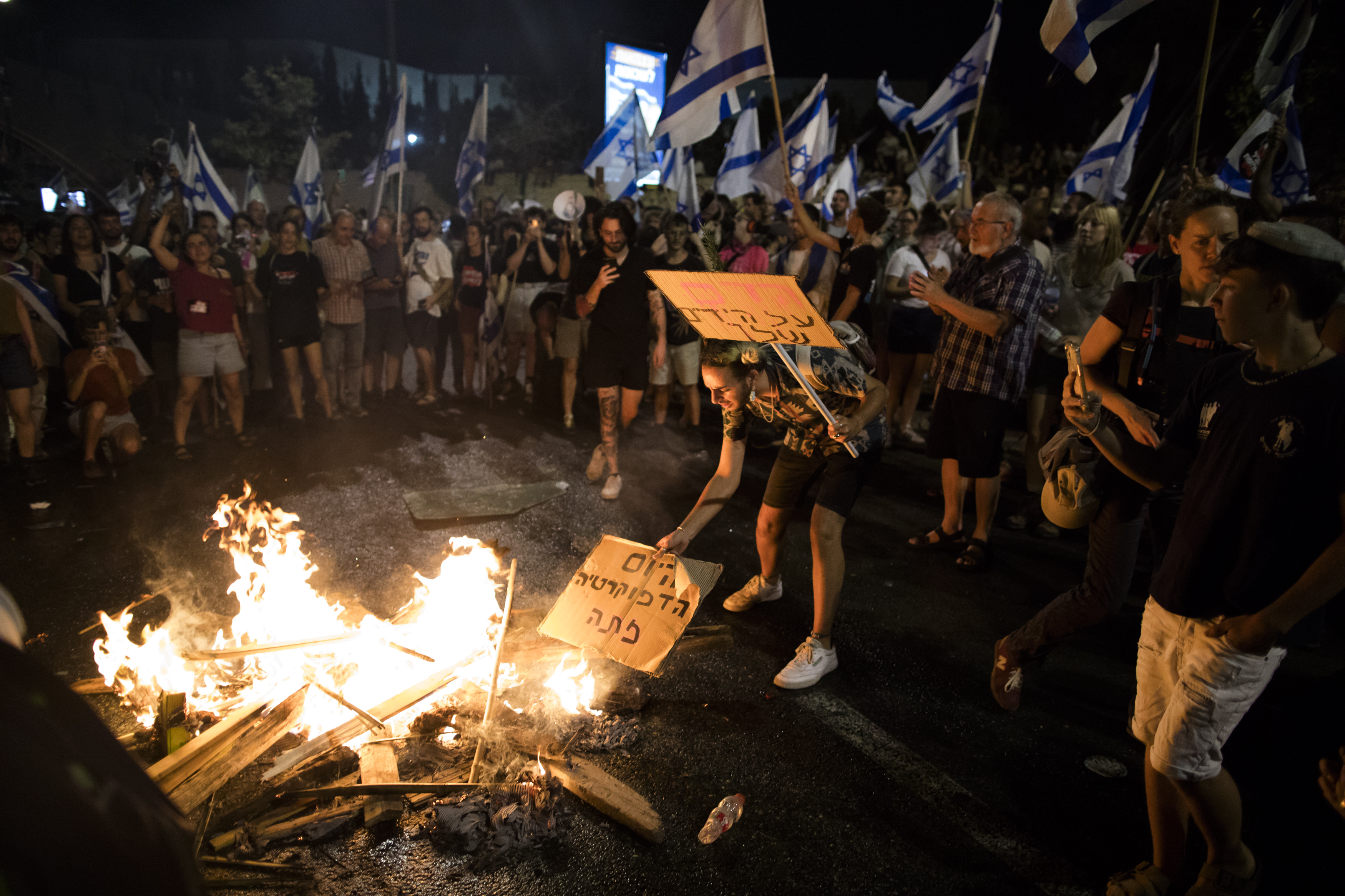متظاهرون يحتجّون في تل ابيب ويضرمون النار في شارع ايالون - مظاهرات اخرى في شتى انحاء البلاد - تصوير الشرطة