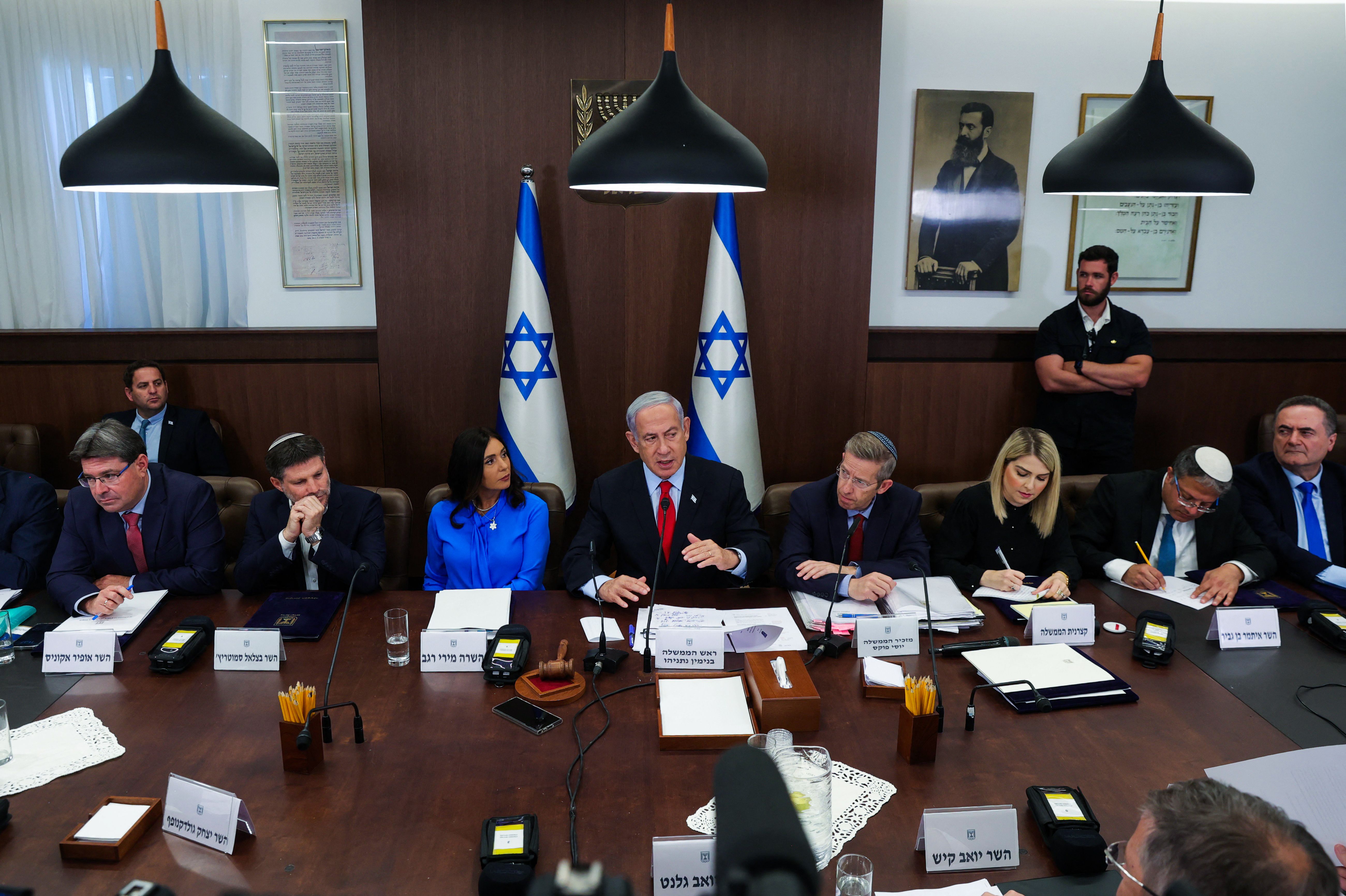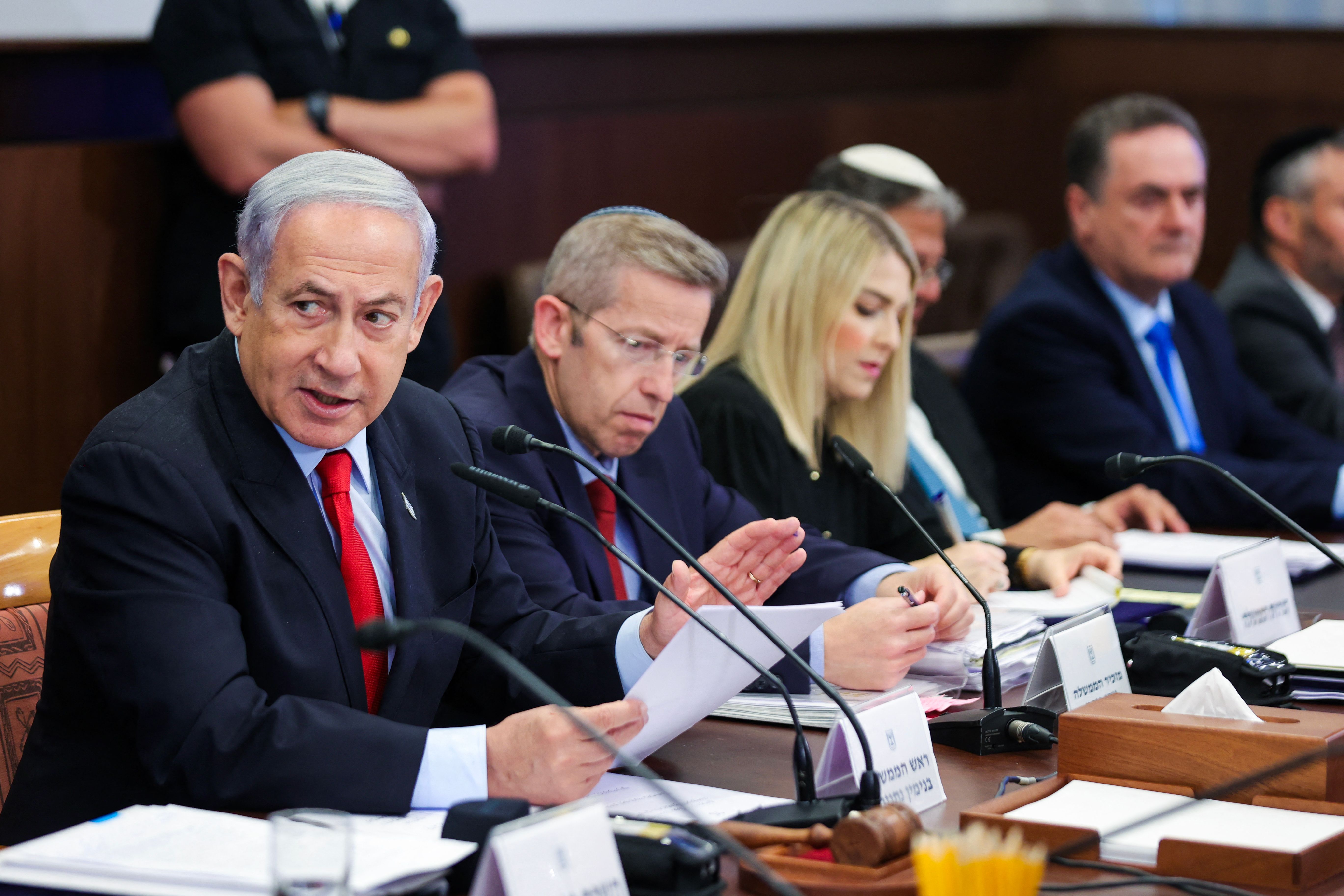 ورئيس جهاز الشاباك رونين بار ورئيس جهاز الموساد ورئيس مجلس الأمن القومي ومسؤولون أمنيون أخرون.