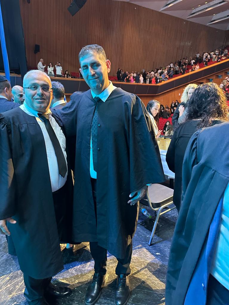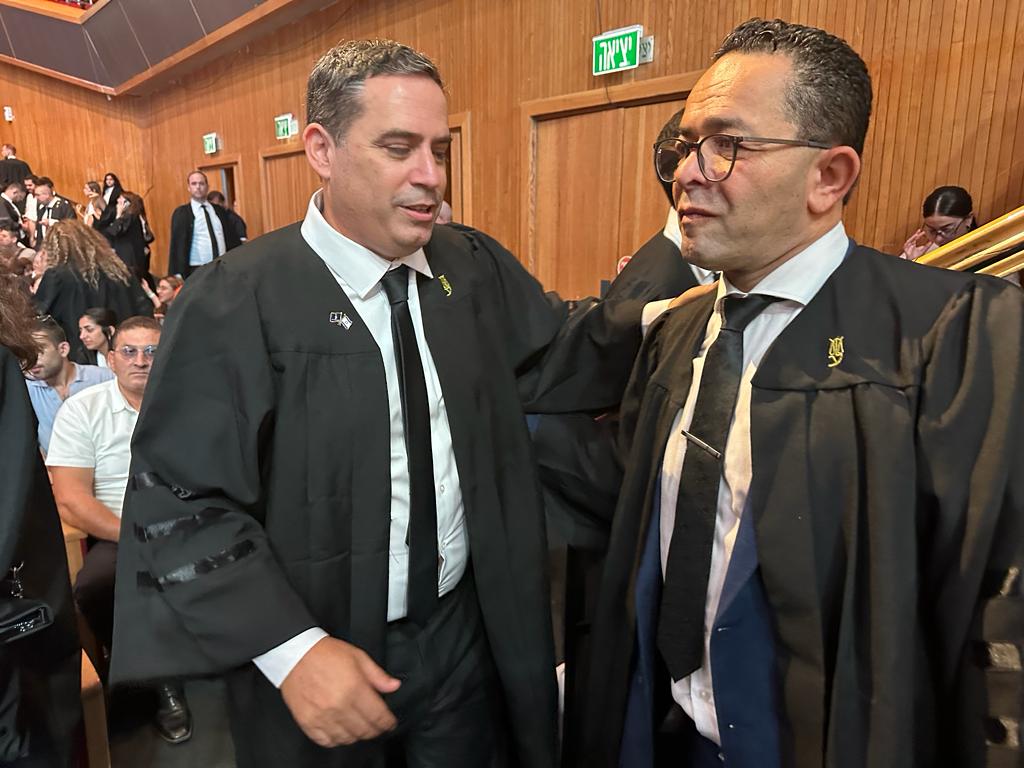 المحامي شاكر بلعوم من الطيبة مع المحامي عميت بيخر رئيس نقابة المحامين - تصوير: موقع بانيت وصحيفة بانوراما