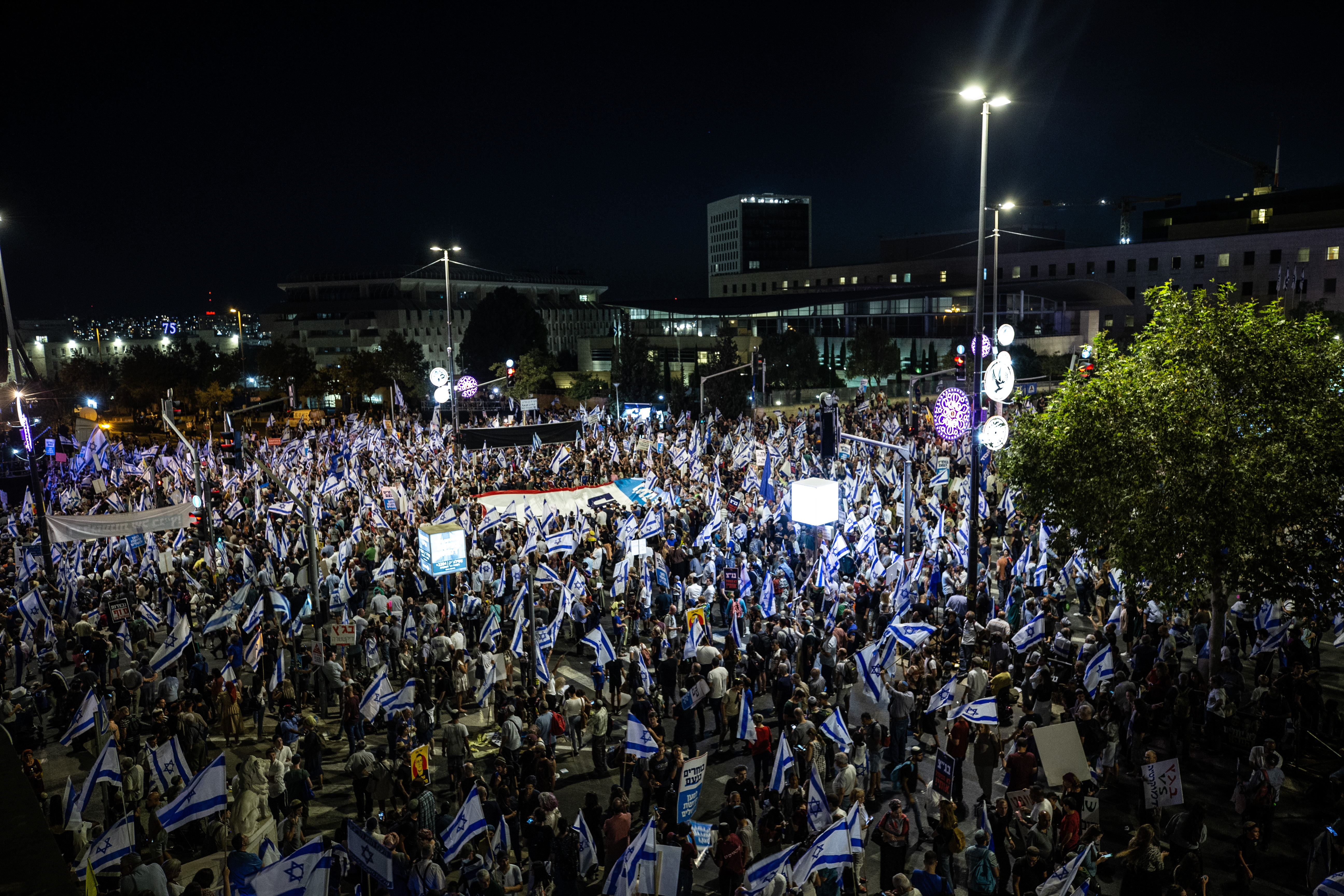 وشارك الالاف في مظاهرة داعمة للتغييرات في جهاز القضاء وللحكومة، وذلك أمام مبنى محكمة العدل العليا في مدينة القدس. جاء تنظيم هذه المظاهرة، قبل أيام قليلة من نظر المحكمة بالاستنئافات المقدمة لها ضد قانون الغاء حجة المعقولية، وكذلك ضد قانون منع عزل رئيس الحكومة. ودعا المتظاهرون المحكمة العليا الى " عدم التدخل بقرارات الحكومة ". جدير بالذكر ان قوات الشرطة قامت بنصب حاجز مزدوج يفصل بين المتظاهرين ومبنى المحكمة.
