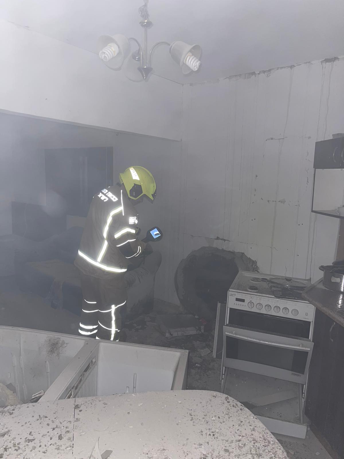 سقوط قذيفة واضرار جسيمة لمنزل في ‘شاعر هنيغف‘ - تصوير سلطة الاطفاء
