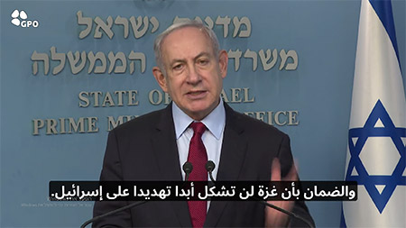 قال رئيس الوزراء نتنياهو هذا المساء: "حماس ارتكبت بحقنا مجزرة مروعة قبل ثلاثة أشهر. الحكومة التي أترأسها أوعزت للجيش الاسرائيلي بشن الحرب من أجل تدمير حماس