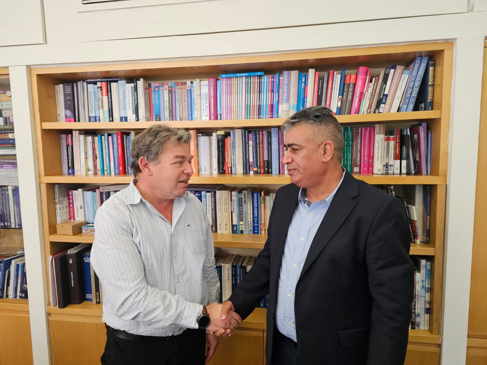 عقد النائب يوسف العطاونة اجتماعاً، مع أ. د حاييم هايمس، عميد جامعة بن غوريون في النقب . وجاء الاجتماع "على أثر الملاحقات والمضايقات