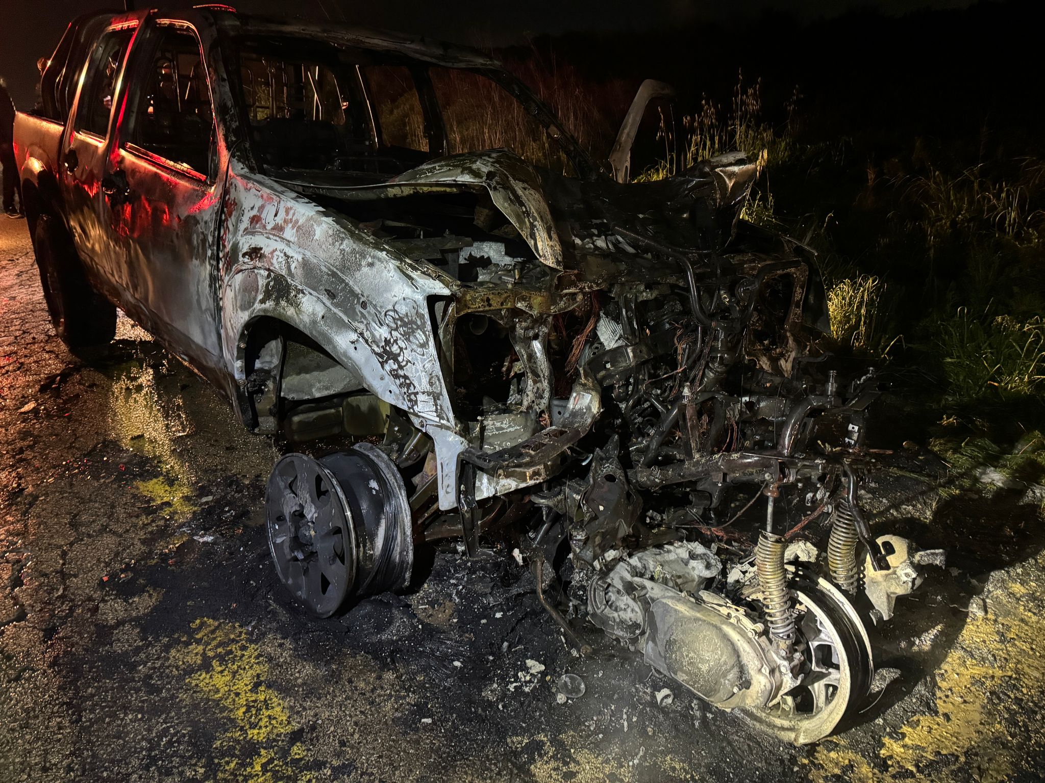من جانبه ، قال كايد ظاهر الناطق الرسمي للاعلام العربي في سلطة التطفاء والانقاذ : " عملت طواقم اطفاء وانقاذ على تخليص عالقين جراء حادث طرق بين دراجة نارية وسيارة على مفرق مجيدو . الطواقم تمكنت من تخليص العالقين ونقلهم للطواقم الطبية التي اقرت مصرع شخص واصابة اخر ، علما ان السيارة المتورطة بالحادث عملت الطواقم على اخمادها " .