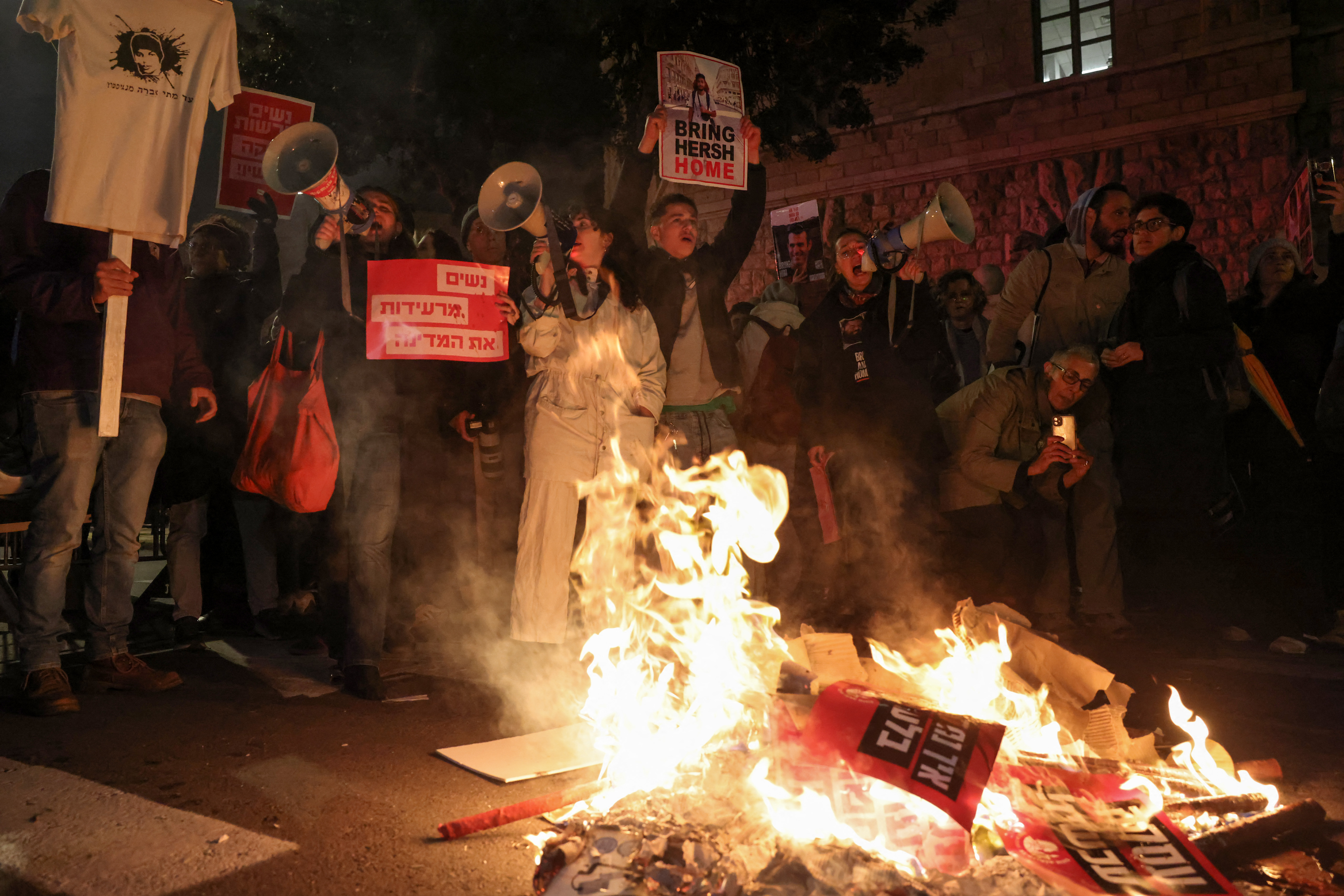 عائلات المختطفين يتظاهرون أمام ‘ الكرياه ‘ في تل أبيب
