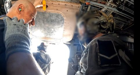 " مرفق توثيق من داخل مروحية "يسعور" التي أنقذت المختطفين الثلاثة، شلومو زيف، أندري كوزلوف وألموغ مئير جيان، بعد عملية التحرير من قبل قوات الوحدة الوطنية لمكافحة الإرهاب (اليمام) والشاباك في قلب النصيرات " .