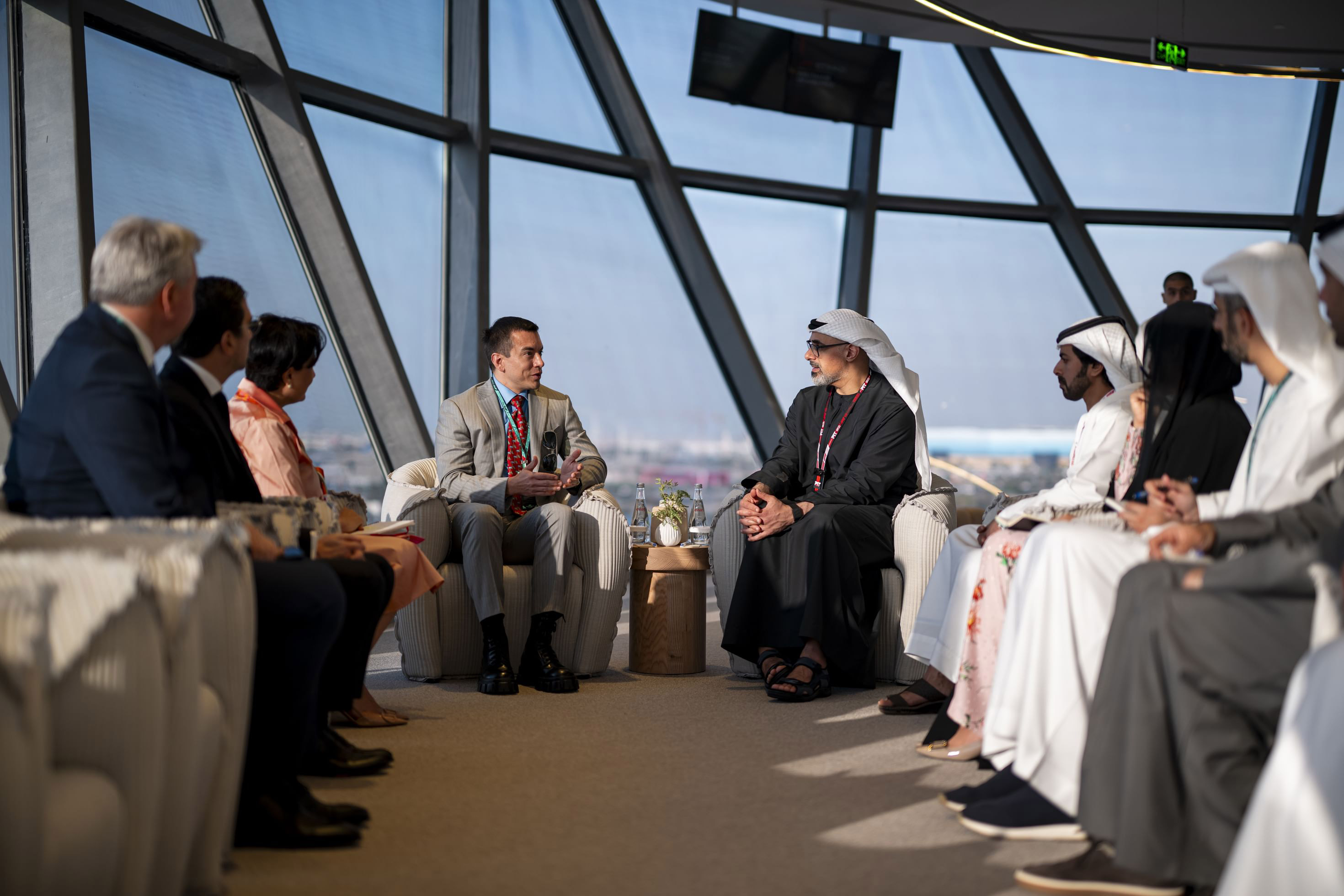 حضر اللقاء معالي الشيخ خليفة بن طحنون بن محمد آل نهيان، رئيس ديوان ولي عهد أبوظبي؛ ومعالي ريم بنت إبراهيم الهاشمي، وزيرة دولة لشؤون التعاون الدولي؛ ومعالي عمر سلطان العلماء، وزير دولة للذكاء الاصطناعي والاقتصاد الرقمي وتطبيقات العمل عن بُعد؛ ومعالي سيف سعيد غباش، الأمين العام للمجلس التنفيذي لإمارة أبوظبي، رئيس مكتب ولي العهد في ديوان ولي عهد أبوظبي؛ ومعالي مريم عيد المهيري، رئيس مكتب أبوظبي الإعلامي، مستشار العلاقات الاستراتيجية في ديوان ولي العهد؛ وسعادة إبراهيم سالم العلوي، سفير فوق العادة ومفوض غير مقيم لدولة الإمارات لدى جمهورية الإكوادور.