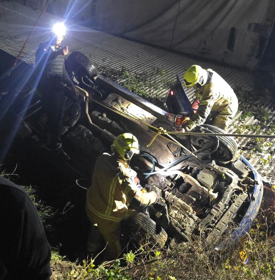 اصابة سائق سيارة انقلبت في واد بعمق 7 أمتار في شفاعمرو - تصوير سلطة الاطفاء