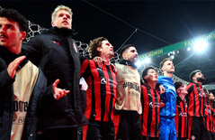 لاعبو فريق ميتيلاند الدنمركي يحتفلون بالفوز على نظيره البلجيكي جينك في الدوري الأوروبي لكرة القدم يوم الخميس - (Photo by Joern Pollex - UEFA/UEFA via Getty Images)