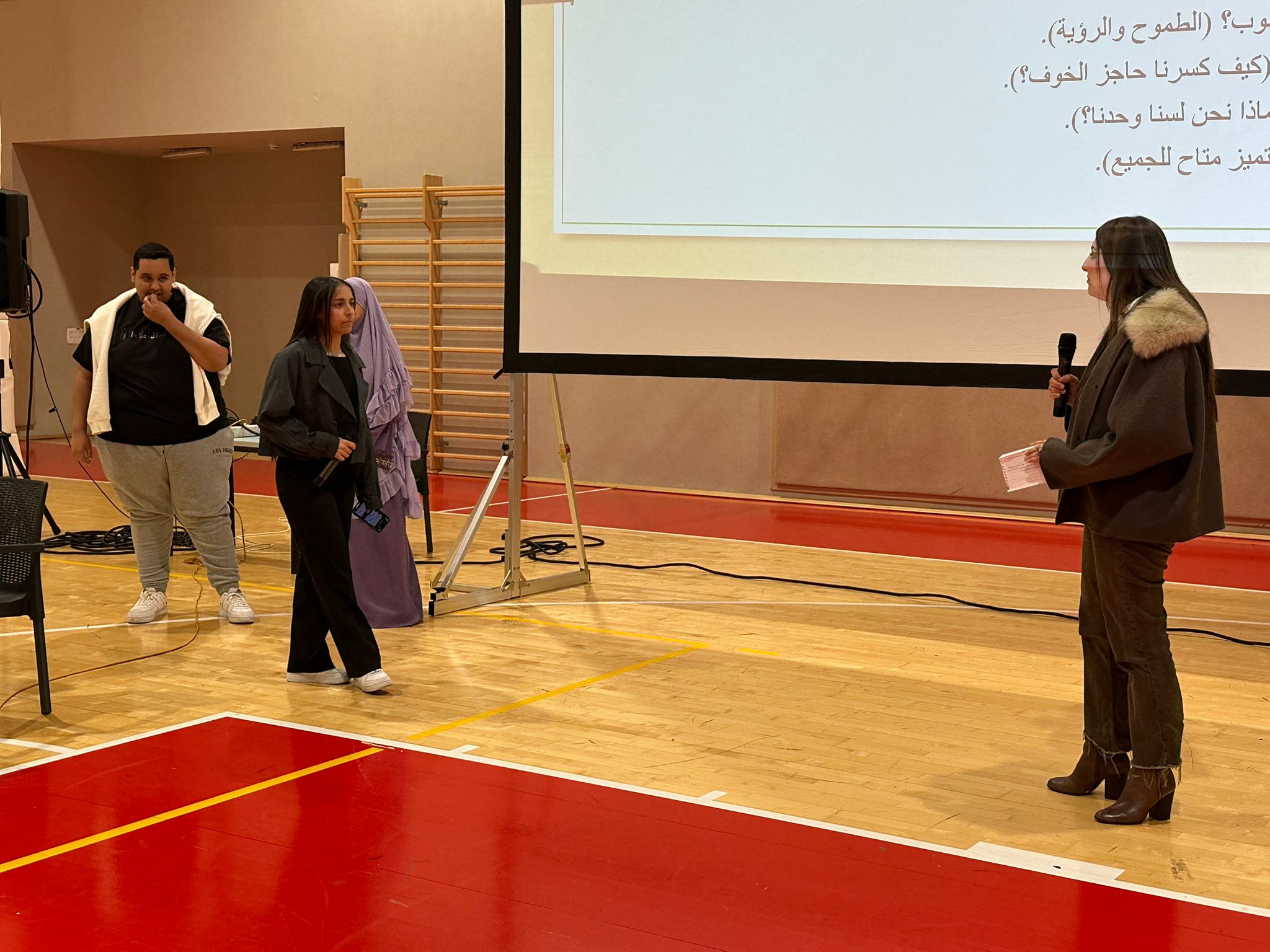 وقد تألق طلاب المدرسة في حوار من القلب حول طموحاتهم وكيف كسروا حاجز الخوف، وهم: أسينات قشاش وأحمد مفلح (طلاب المربية تحرير مسلماني). منيرة ابريق (طالبة المربية انعام سعدي عطر).