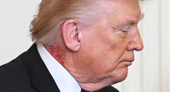 وكشفت الصور التي تداولتها وكالات أنباء عالمية قشور بارزة فوق ياقة قميص ترامب، على الجانب الأيمن من عنقه، علما ان ترامب يبلغ من العمر 79 عاما، وهو الأكبر سنا الذي يُنتخب لهذا المنصب على الإطلاق.