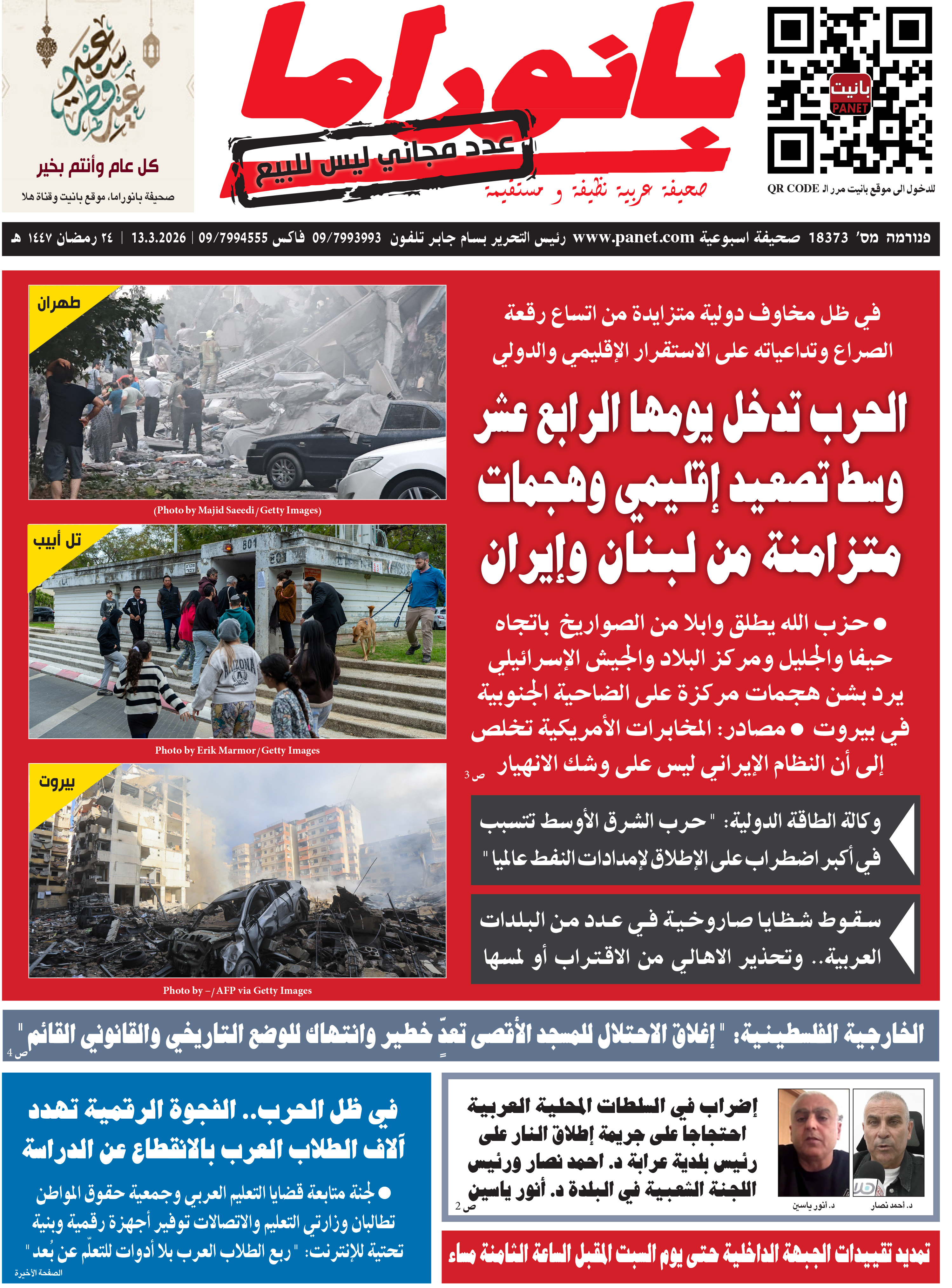 ننشر لزوار موقع بانيت الكرام العدد الجديد من صحيفة بانوراما، اقوى الصحف العربية في البلاد والاكثر شعبية على الاطلاق ، والذي صدر صباح اليوم الجمعة، الموافق 13.3.2026.