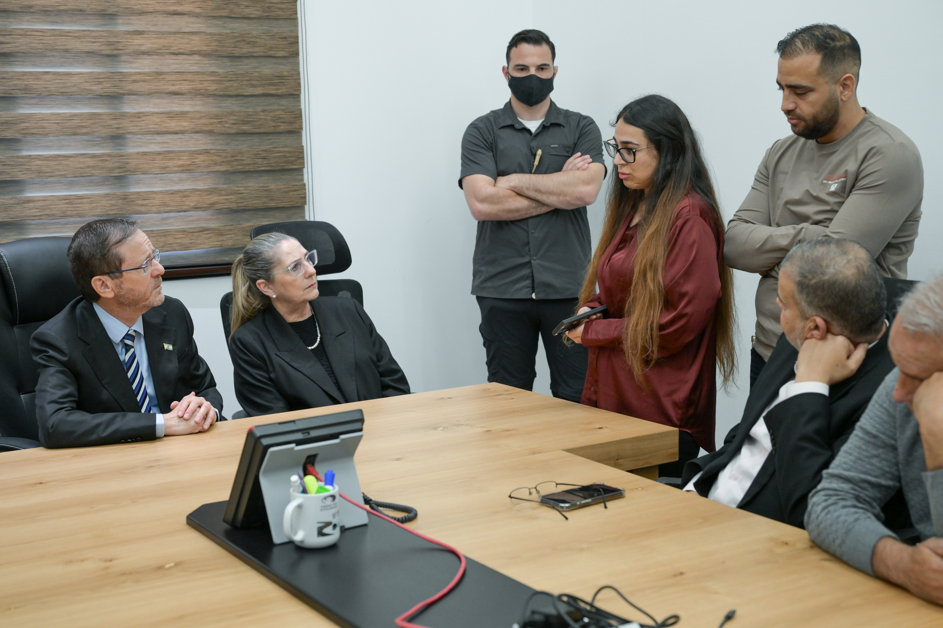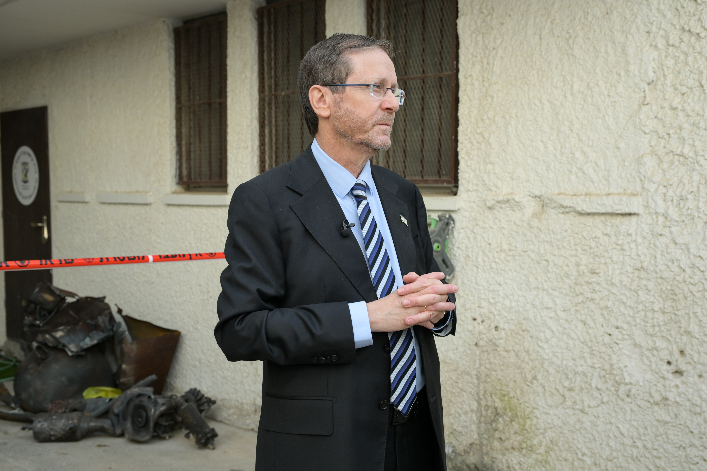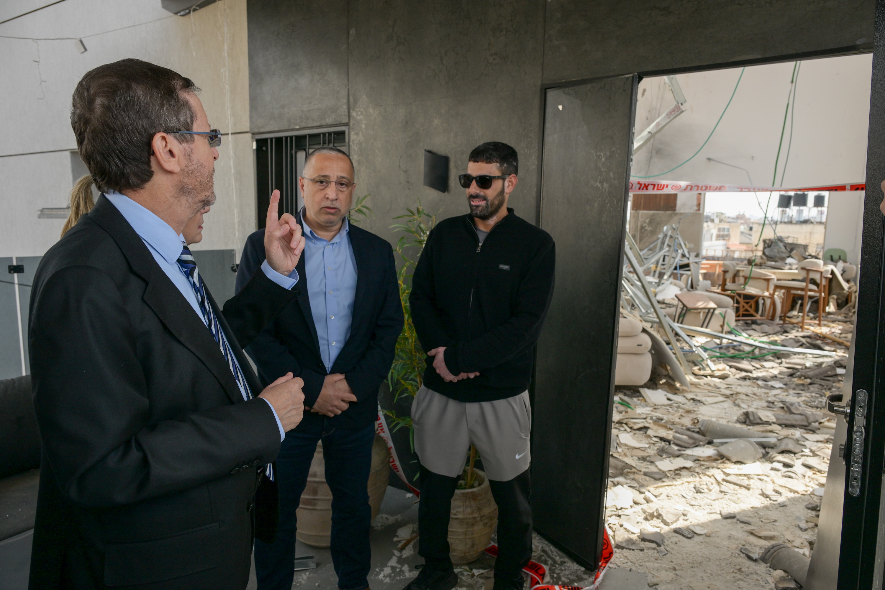 رئيس الدولة هرتسوغ يزور كفر قاسم بعد سقوط الصاروخ فيها :‘الصواريخ لا تفرّق بين أبناء الديانات المختلفة‘