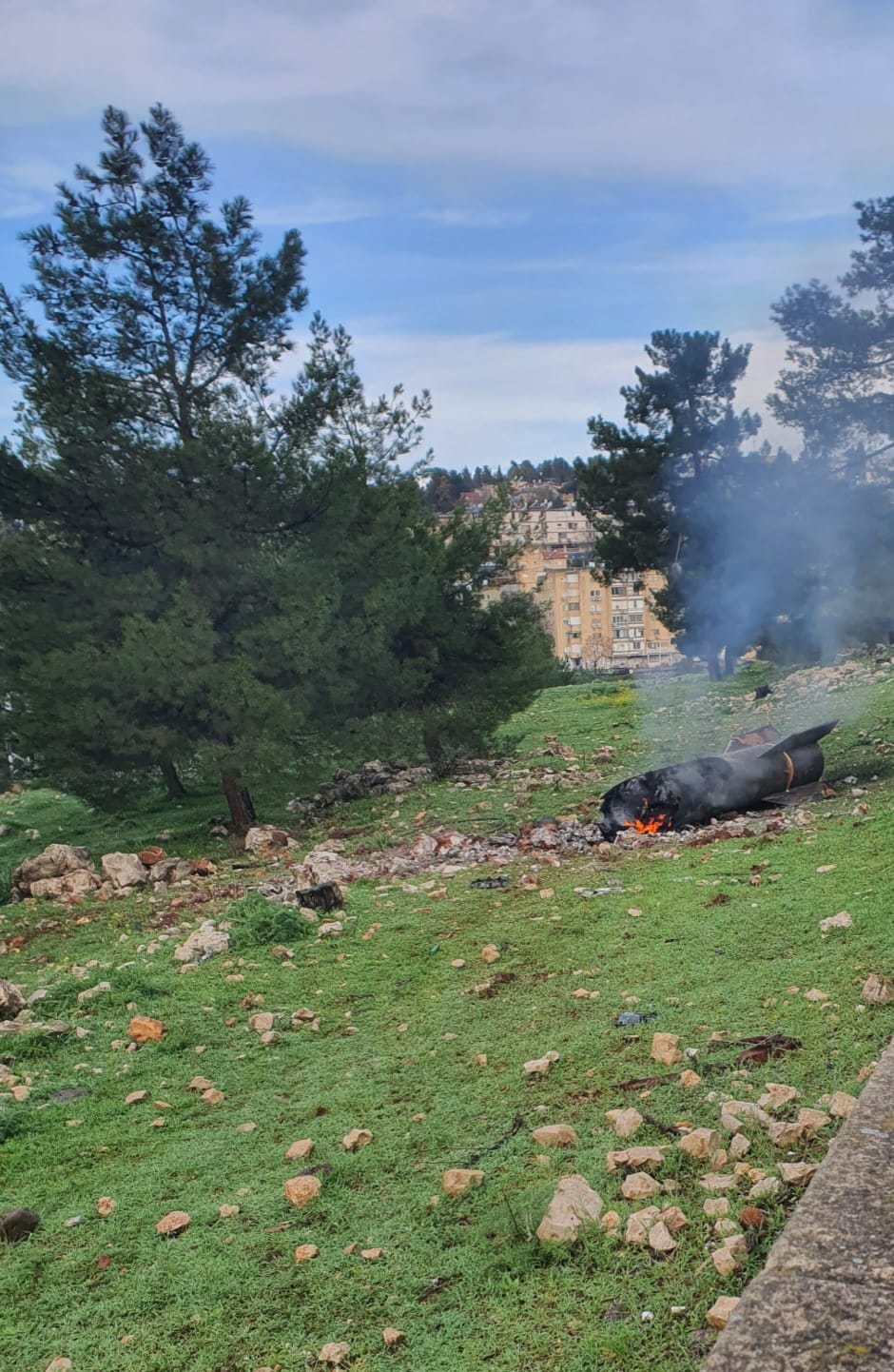 سقوط شظية صاروخ في منطقة مفتوحة في صفد - تصوير سلطة الاطفاء