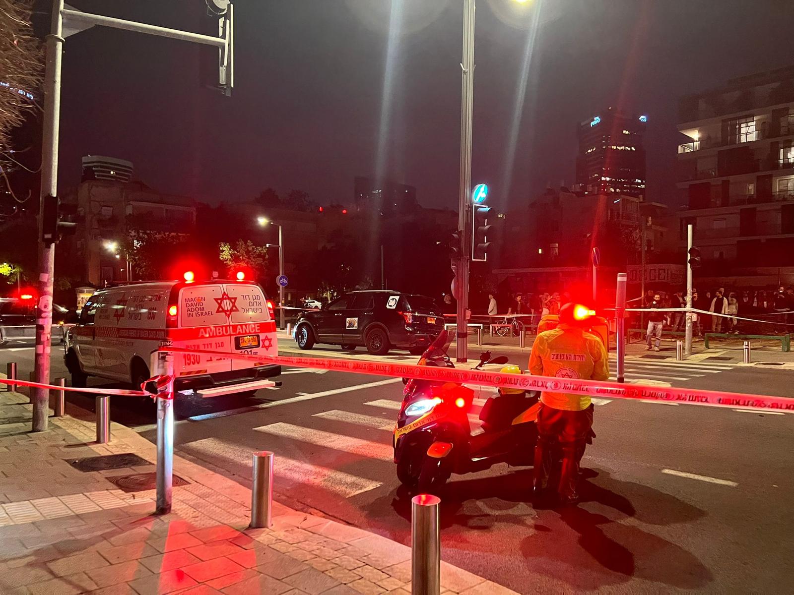قوات الإسعاف تهرع إلى أحد مواقع السقوط في غوش دان - تصوير: نجمة داوود الحمراء