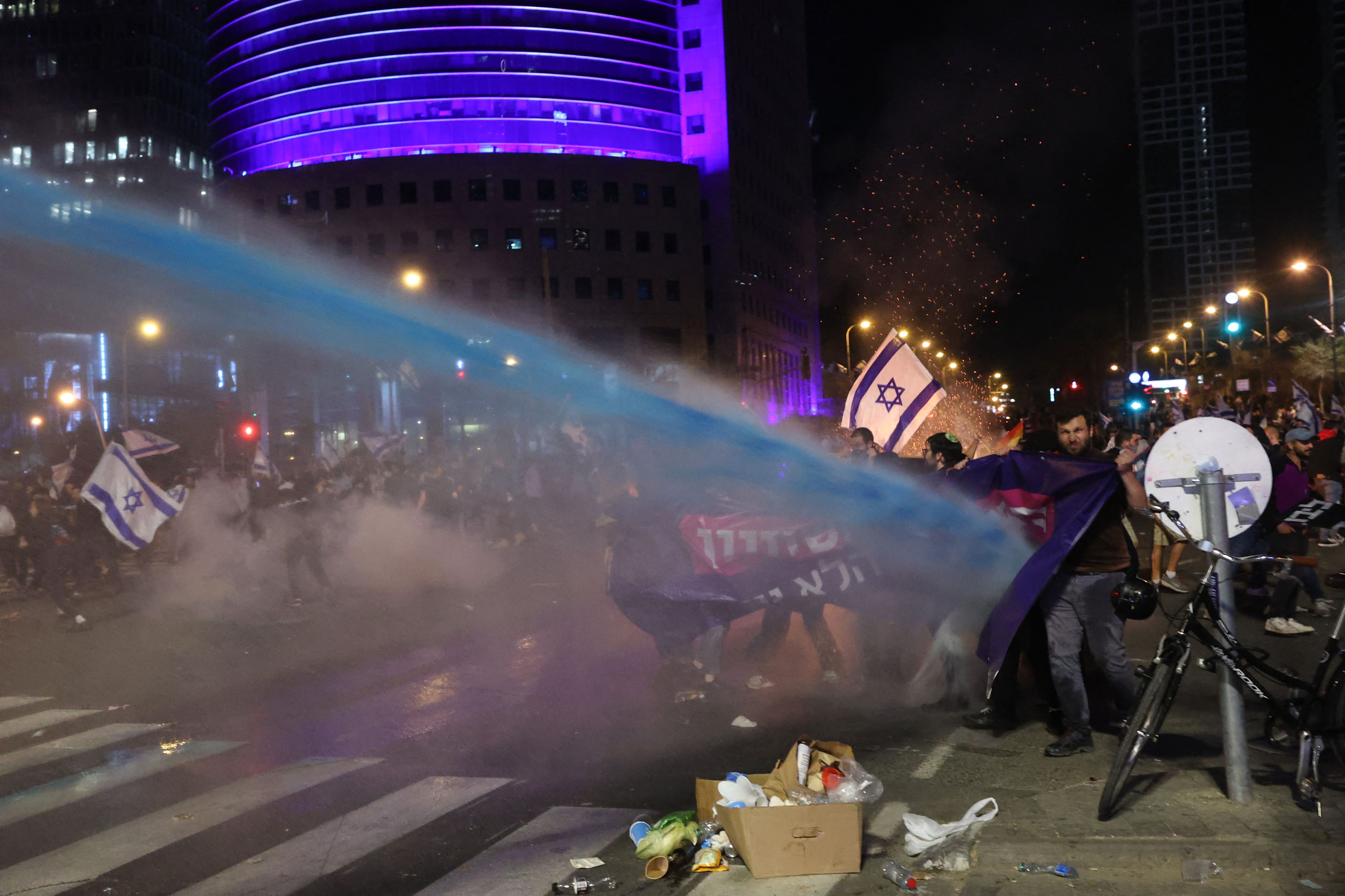 مواجهات في تل ابيب : بدء تفريق المحتجين بخراطيم المياه في مفترق السلام