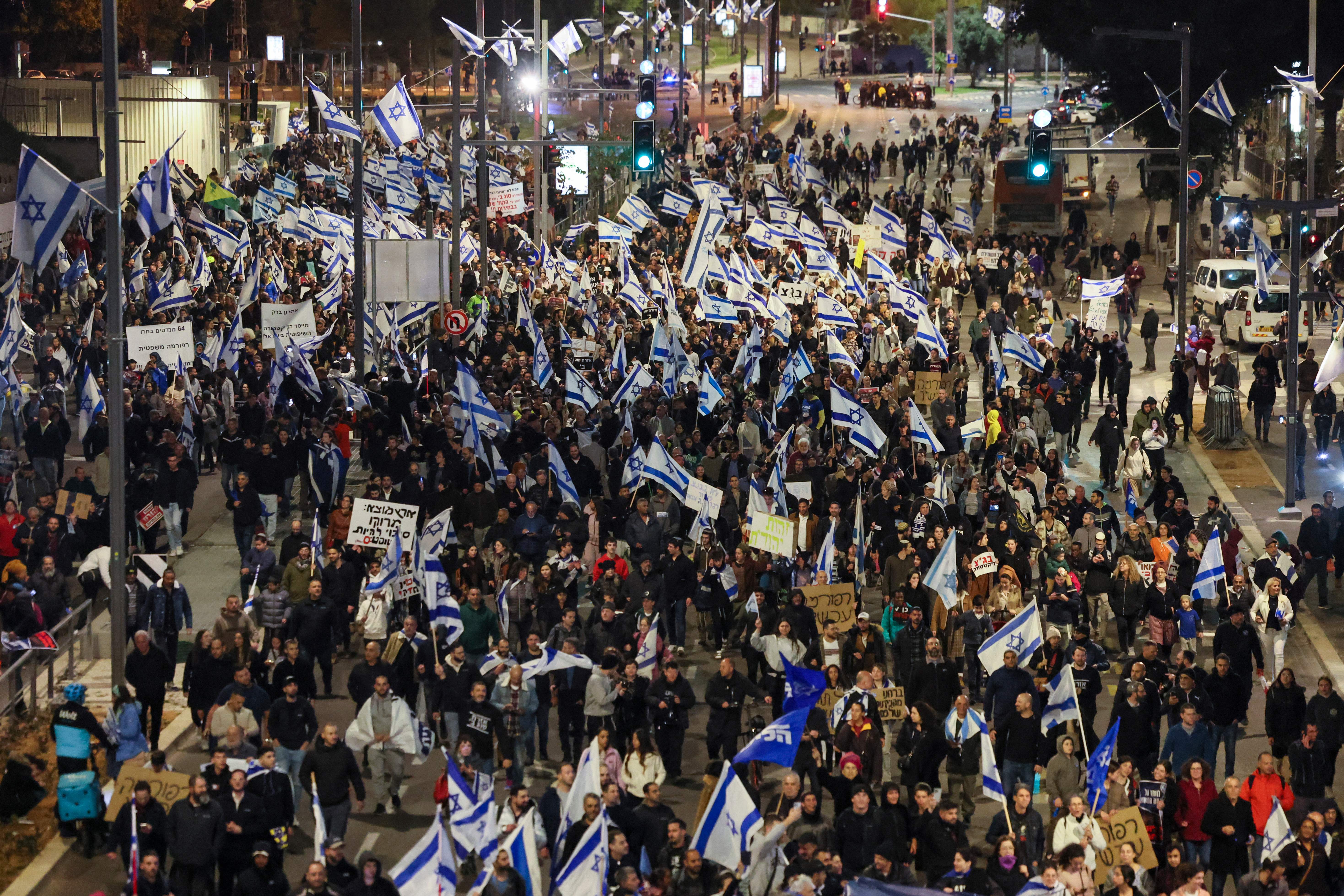 "شعارات وهتافات مناهضة للتعديلات القضائية"