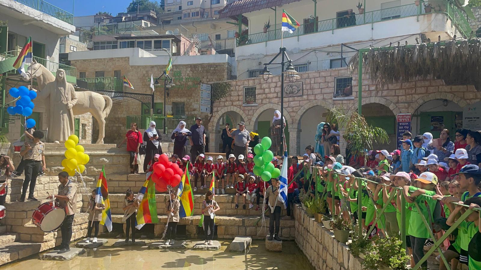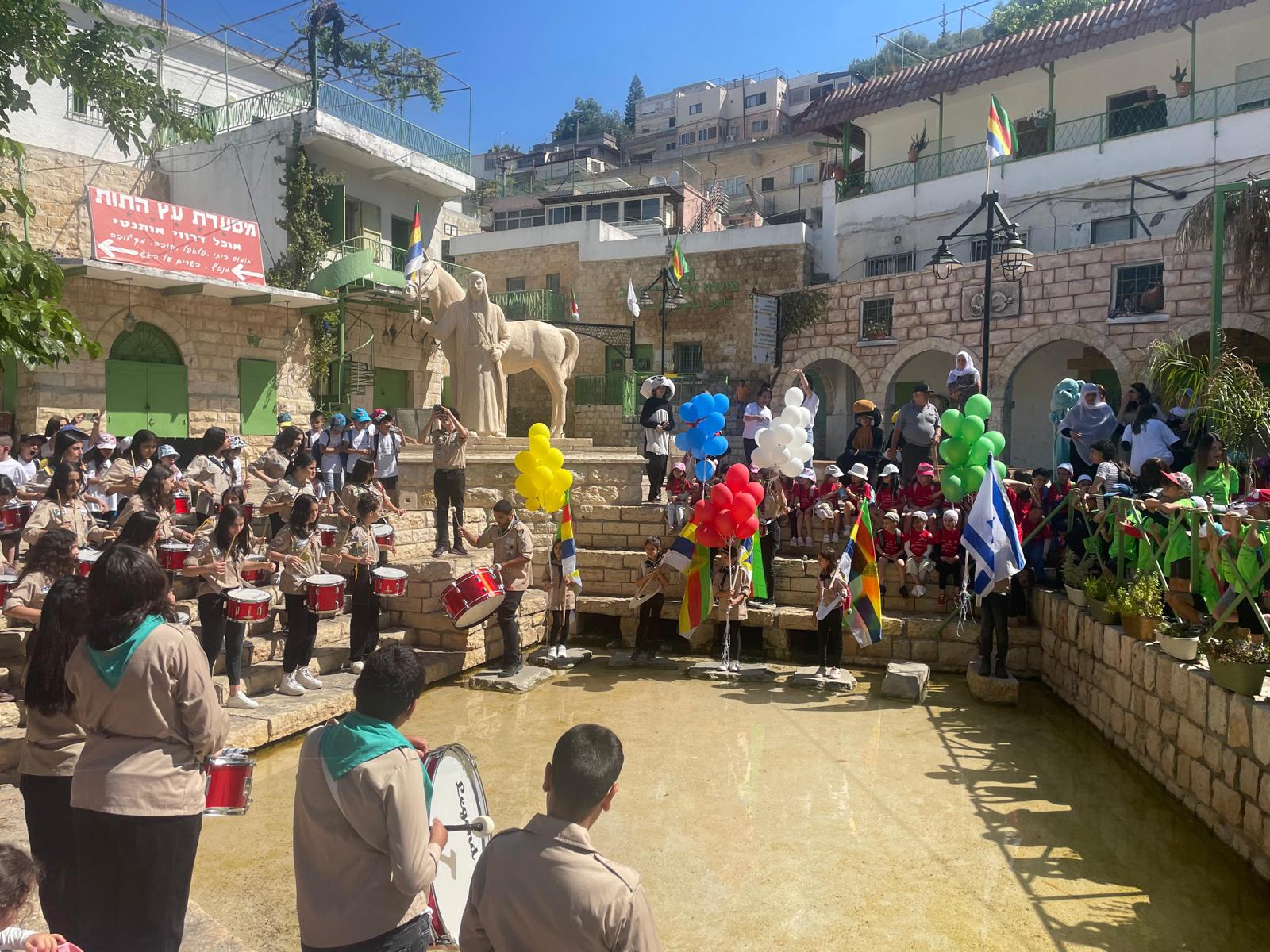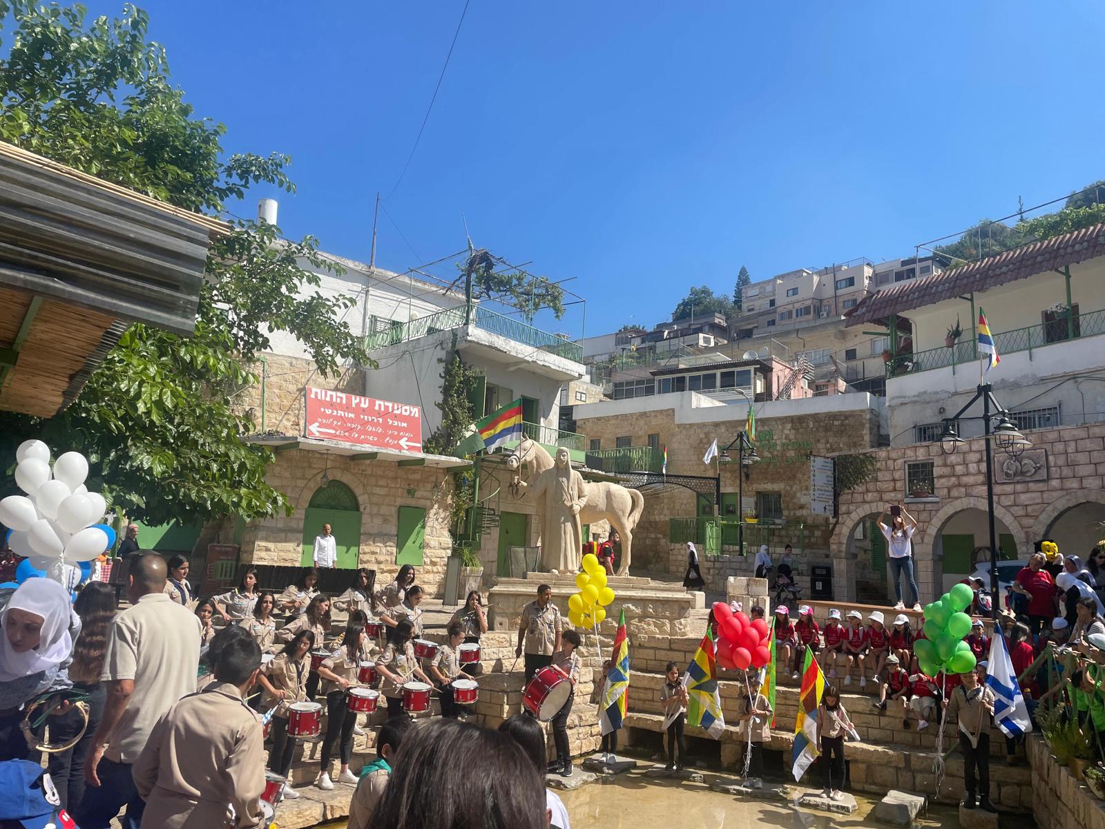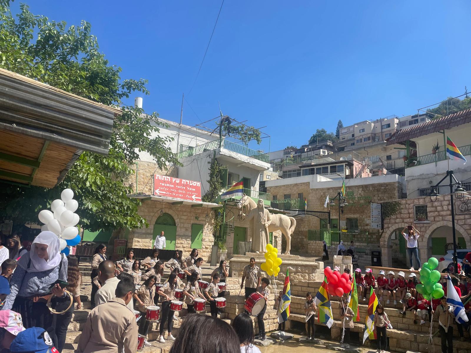 ووصلت المسيرة الى مركز البلد حيث تتواجد " عين البلد " وهناك قدمّت سرية الكشافة عرض كشفي وتم تطيير البالونات .