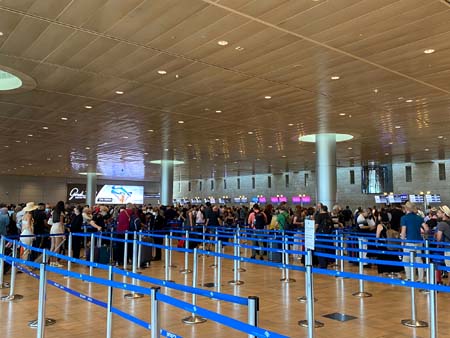وتوصي سلطة المطارات بأن يصل المسافرون إلى مطار بن غوريون عن طريق القطار والمواصلات العمومية. واشارت سلطة المطارات بانه " من اجل راحة المسافرين ، قامت إدارة المطار بتعزيز وزيادة عدد الحافلات الداخلية في المطار (شاتل) بين محطات النقل و"الترمينال".