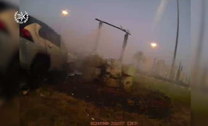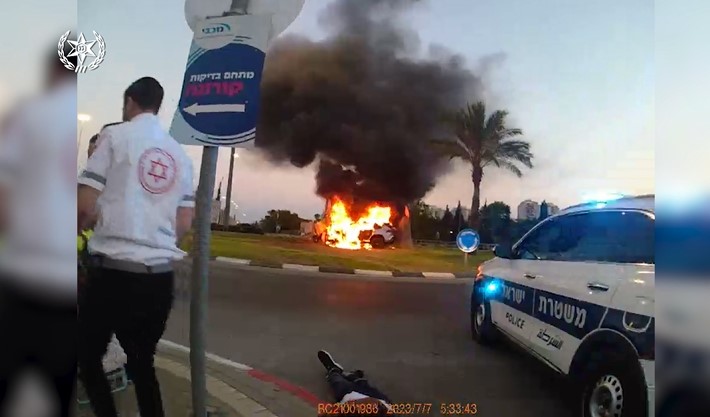 واصلت قوات الشرطة أنشطة المسح وراء السيارة المشتبه، وتبين أن المشتبه به تمكن من الوصول إلى ريشون لتسيون، وتعرض لحادث في الميدان، واصطدم بصخرة، حيث بدأت المركبة التي قادها بالإشتعال بينما المشتبه به محاصر بداخلها.