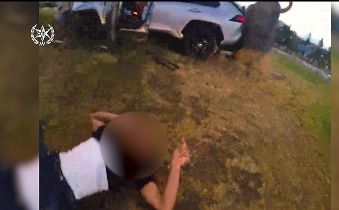 تم تحديد موقع السيارة بسرعة وتم سد طريقها لإيقافها. عندها صدم المشتبه به سائق السيارة المسروقة مركبة شرطية وواصل هروبه بينما قاد مركبته بصورة متهورة باتجاه مدينة ريشون لتسيون.