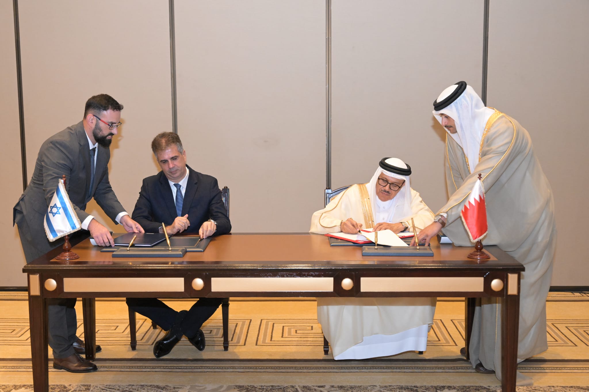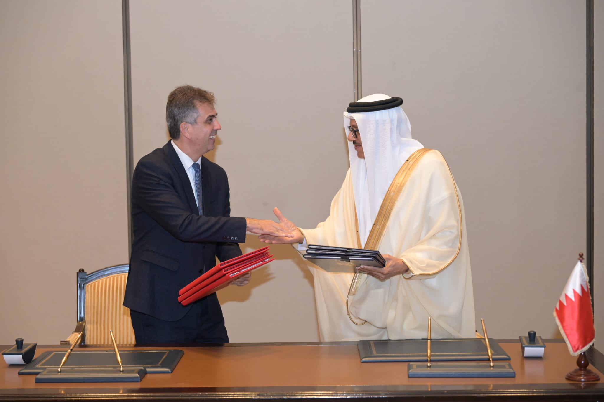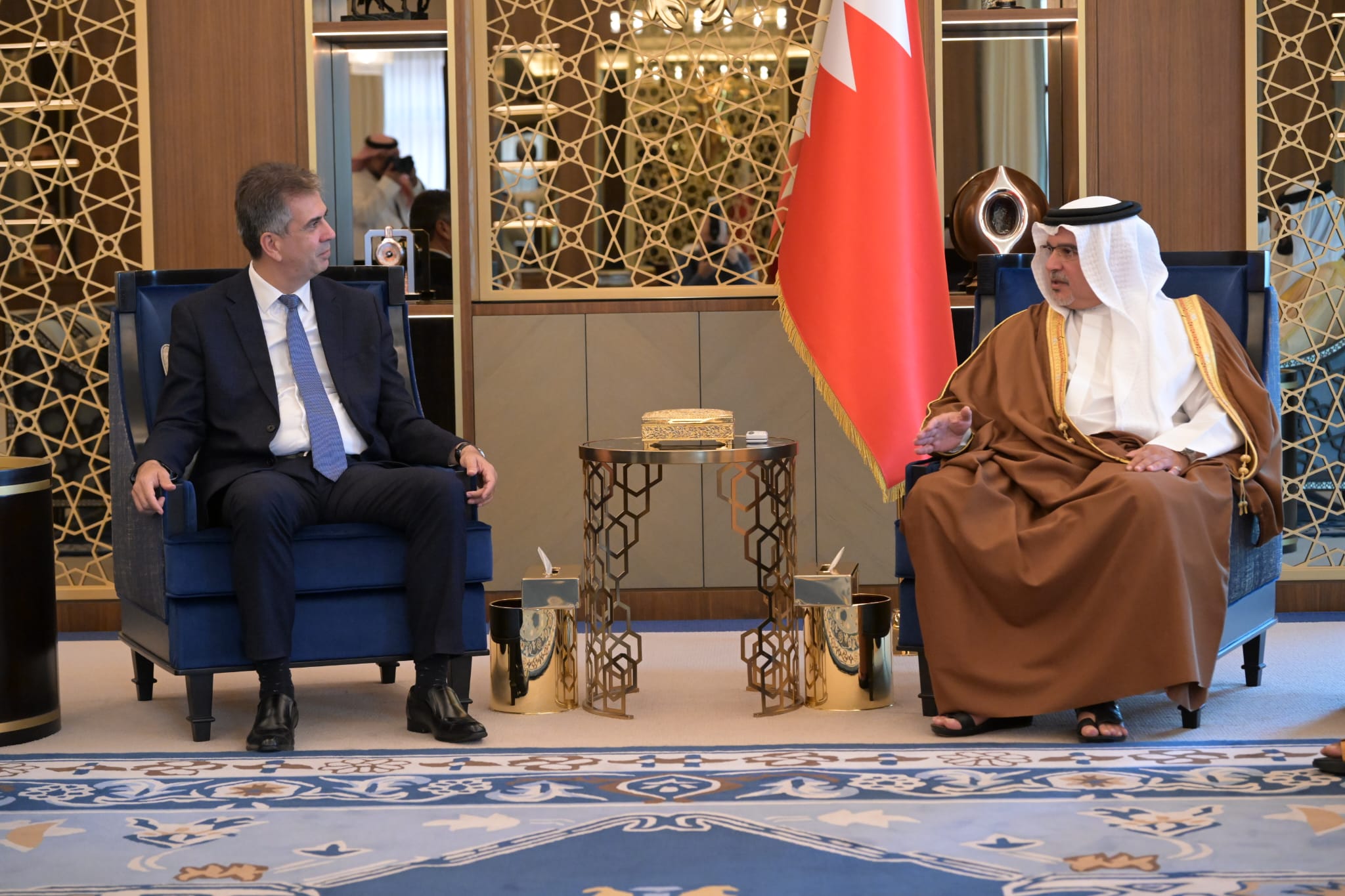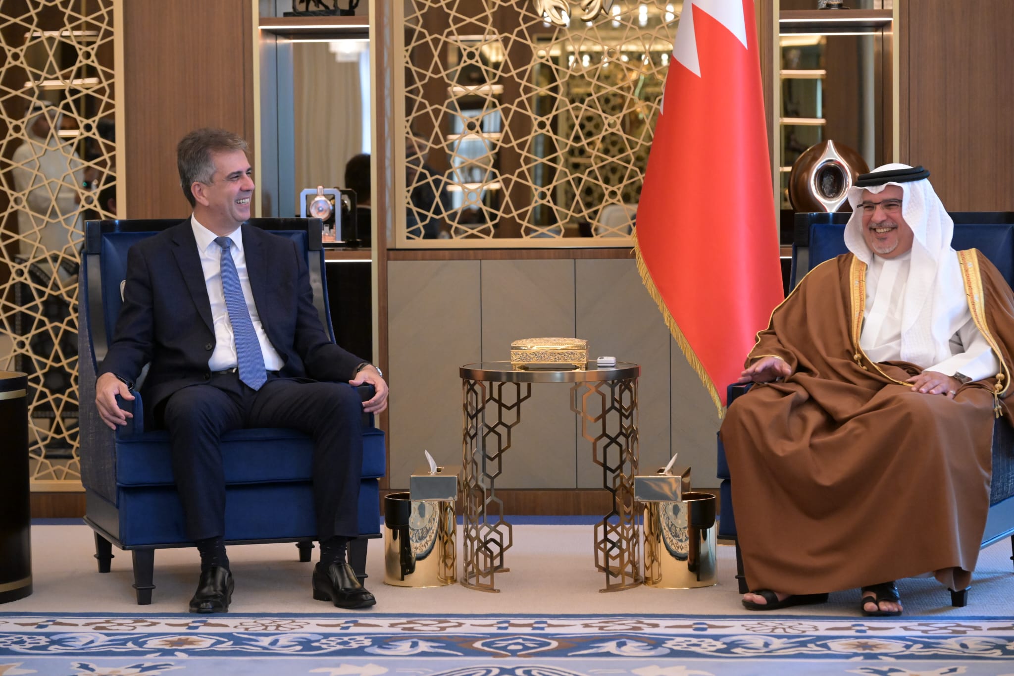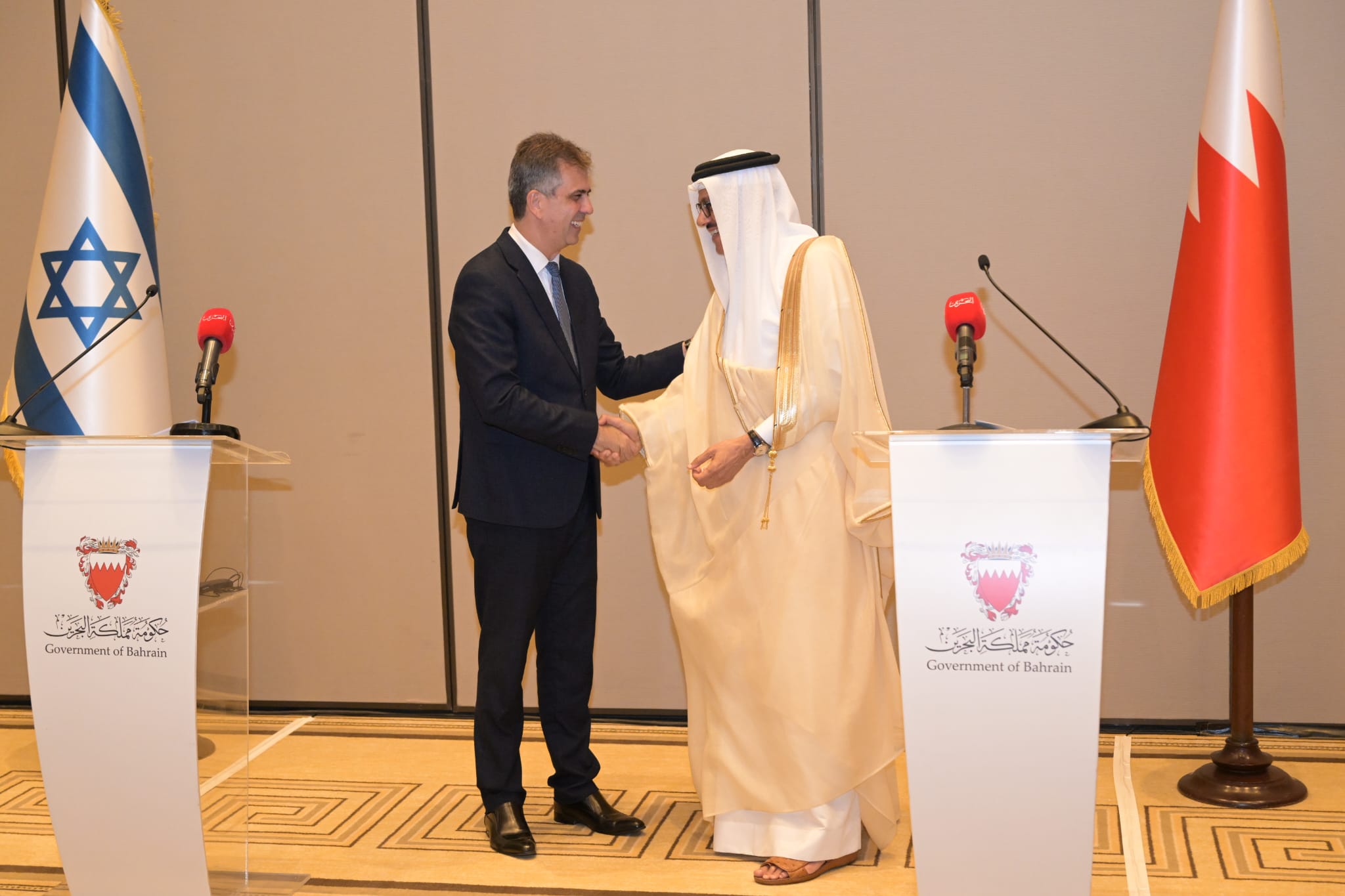 عرض وزير الخارجية الإسرائيلي إيلي كوهين، مع ولي عهد البحرين الأمير سلمان بن حمد آل خليفة، مختلف التحديات الإقليمية والتجارة الحرة.