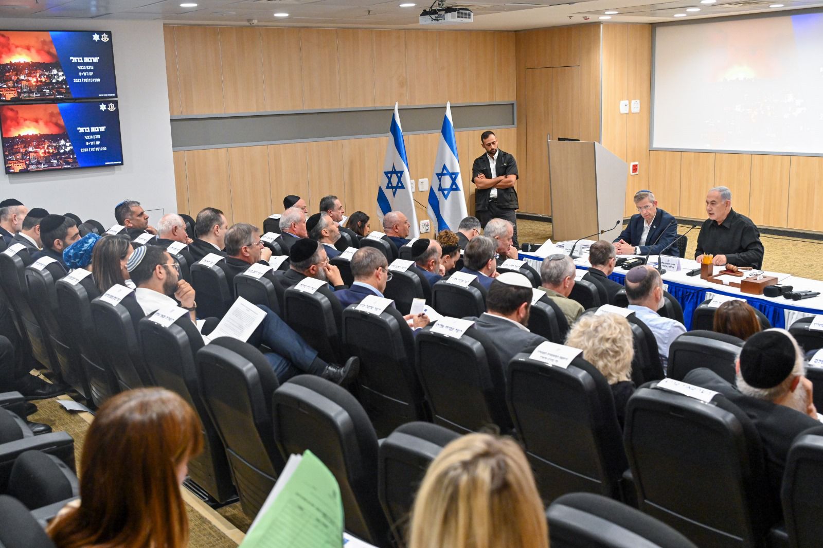 انعقدت حكومة الطوارئ الموسعة للمرة الأولى ، اليوم الأحد. بدأ الاجتماع، الذي عقد في المقر العسكري في تل أبيب، بوقوف الوزراء دقيقة صمت حدادا على أرواح نحو 1300 إسرائيلي