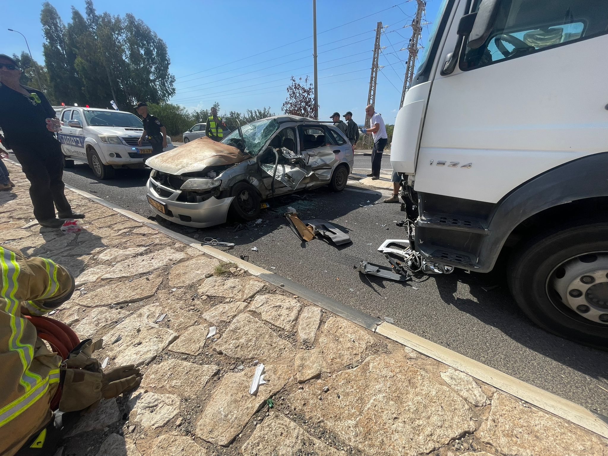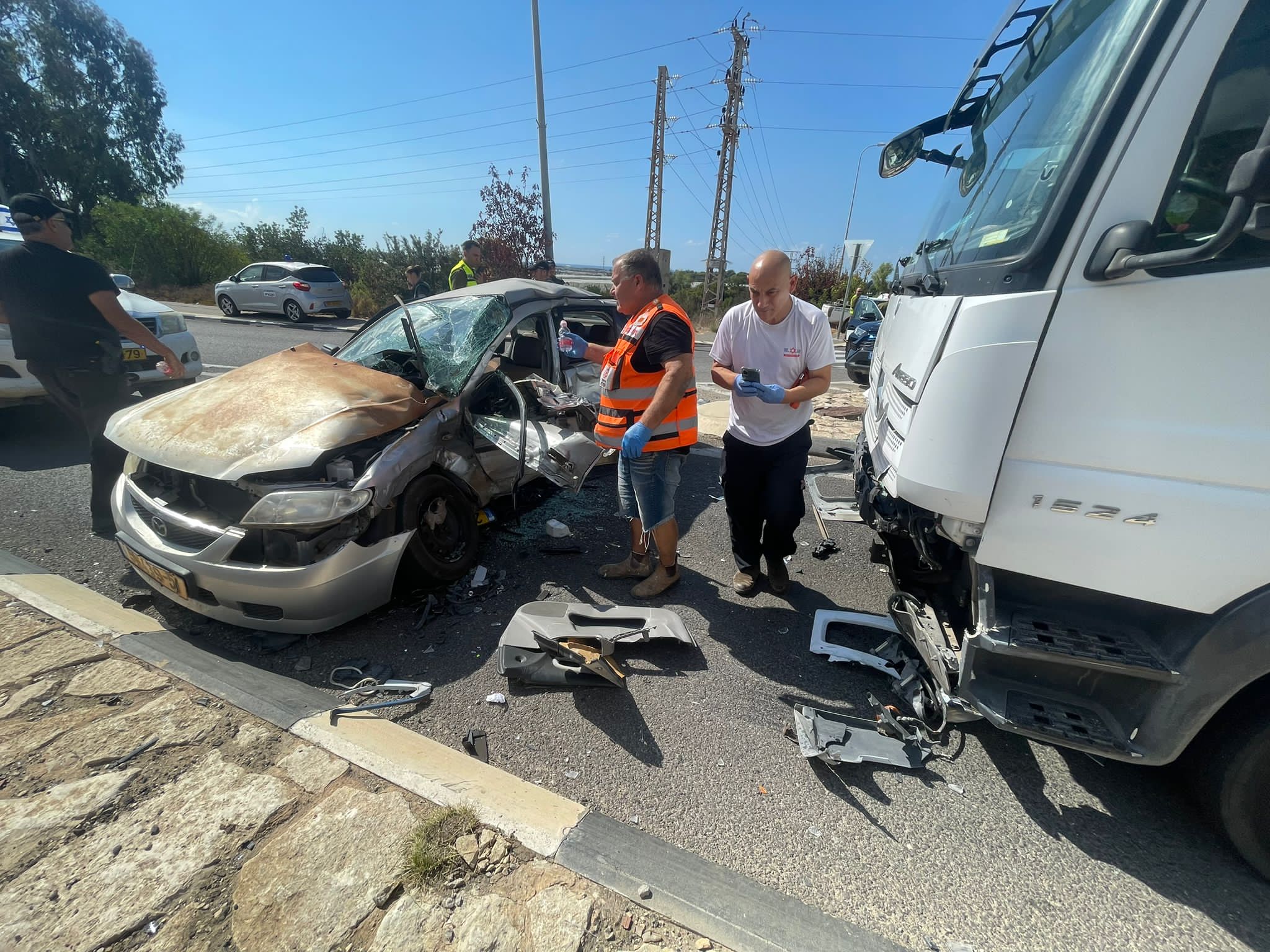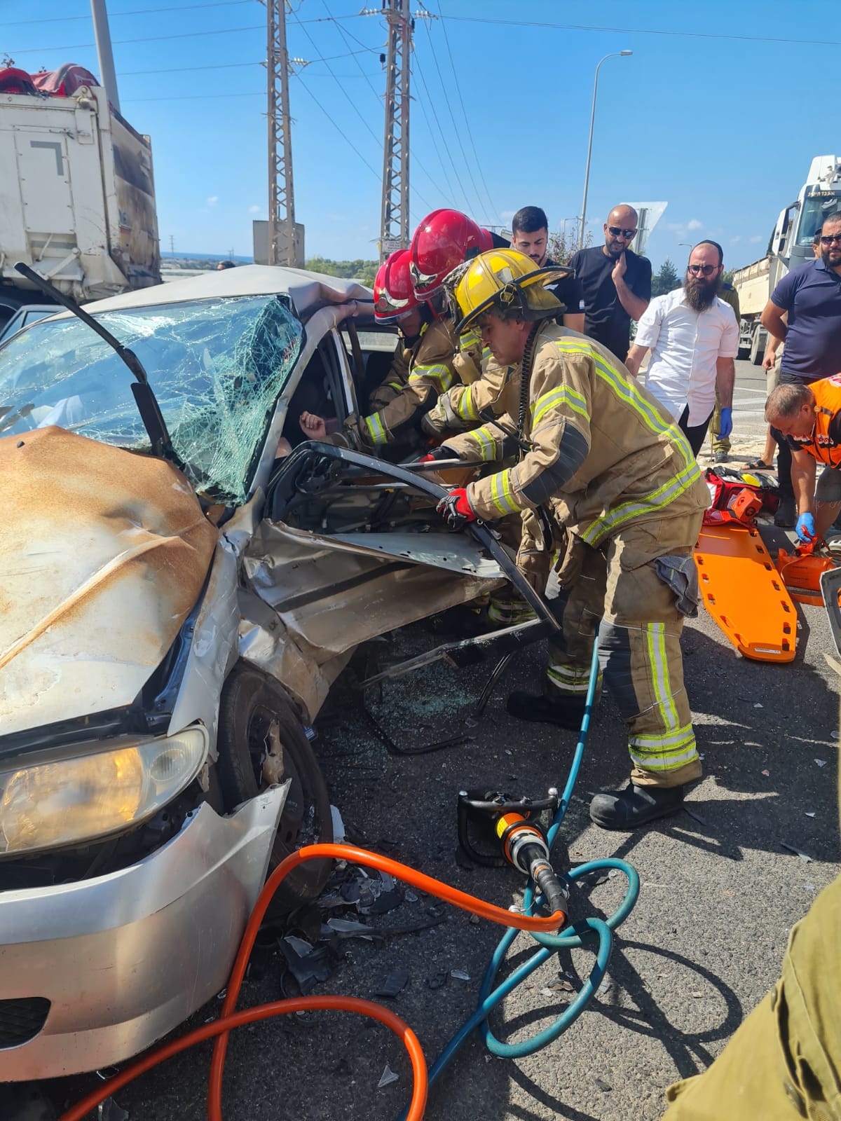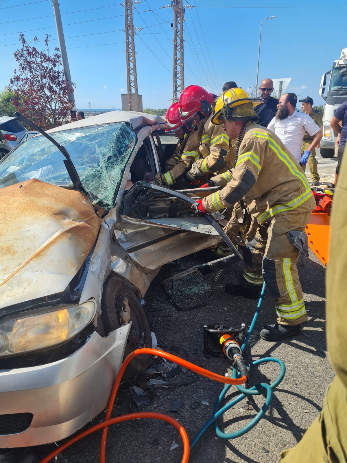 طرق وقع بشارع الشاطئ (شارع 4) بالقرب من مفرق أورين، ولدى وصول الطواقم تبين ان الحادث بين سيارة خصوصيه وشاحنة ويوجد سيدة عالقة داخل السيارة . عملت الطواقم على معالجه الحادث بمساعدة ادوات خاصة. وتم نقل السيدة للطواقم الطبية لاستكمال العلاج ووصفت حالتها بين المتوسطة والخطيرة. واصيب ايضا سائق الشاحنة ووصفت حالته بالطفيفة".