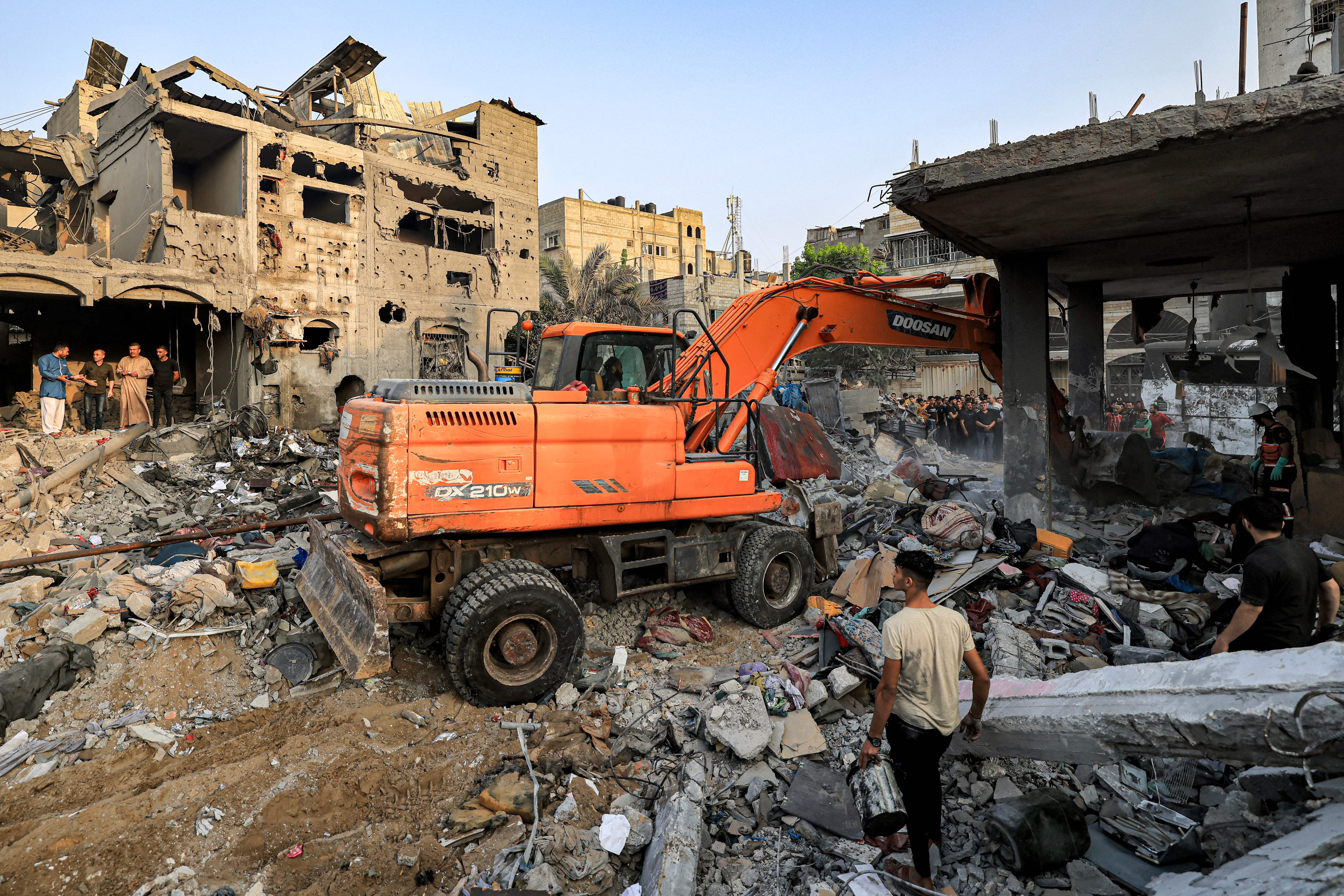 فلسطينيون يبحثون عما تبقى من أغراضهم بعض القصف الإسرائيلي -تصوير رويترز