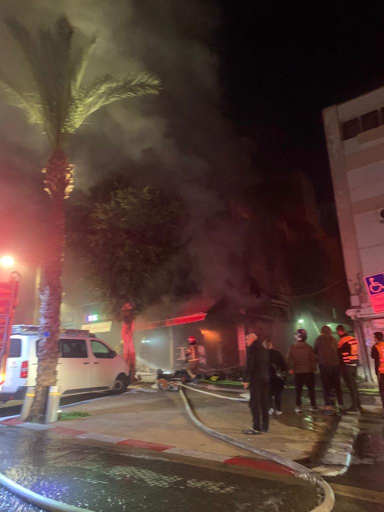 إندلاع حريق في محل احذية في الخضيرة - تصوير سلطة الاطفاء