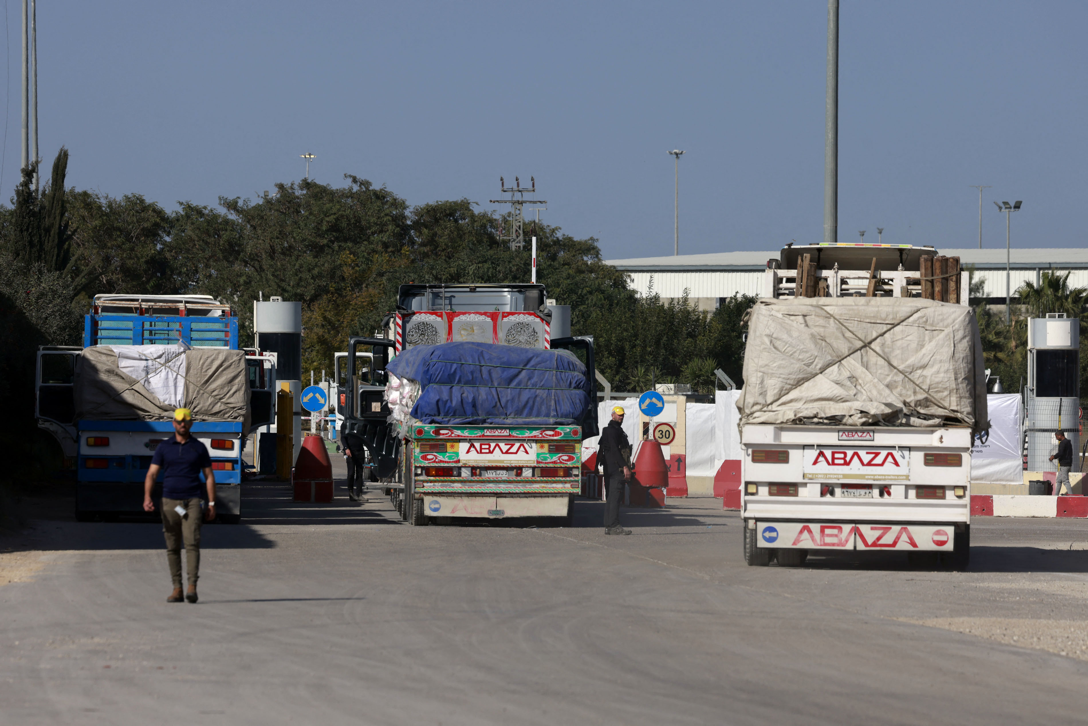 وقامت قوات الأمن بمنعهم من اغلاق الشارع امام شاحنات المساعدات الانسانية المتوجهة الى غزة .