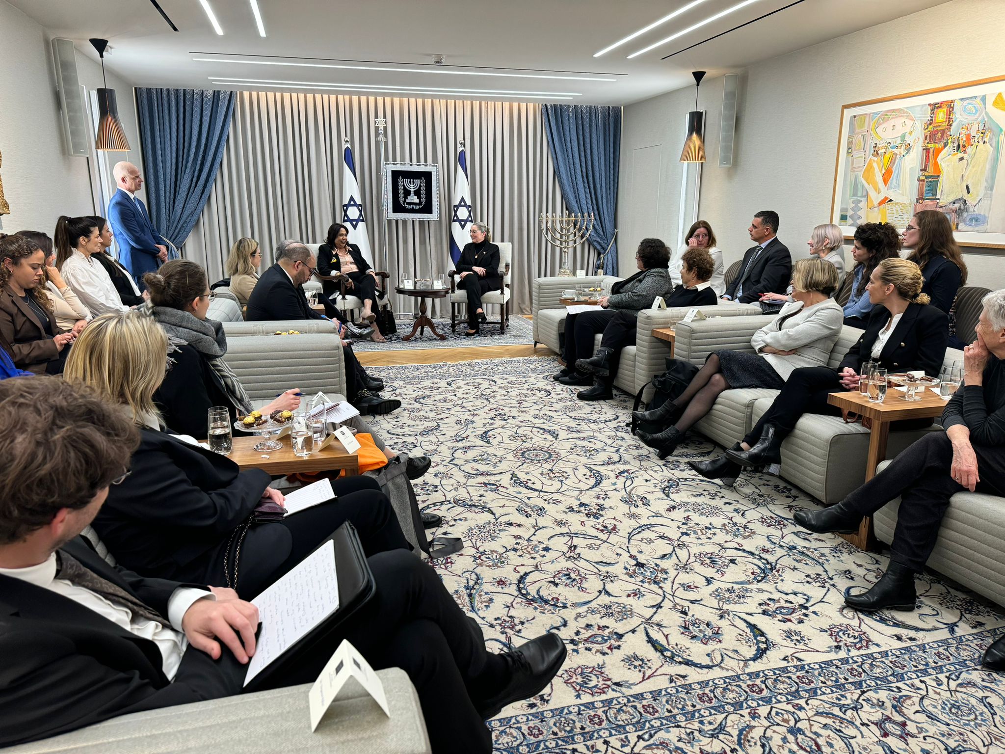 التقى رئيس الدولة يتسحاق هرتسوغ وزوجته ميخال، يوم امس الاثنين، براميلا باتن، وكيلة الأمين العام للأمم المتحدة والمبعوثة الخاصة للأمين العام للأمم المتحدة المعنية بالعنف الجنسي في النزاعات.