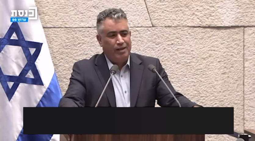 النائب يوسف العطاونة: ‘حكومة الحرب واليمين المتطرف مستمرة في سياسة التضليل وكم الأفواه وتشويه الحقائق‘ - تصوير قناة الكنيست