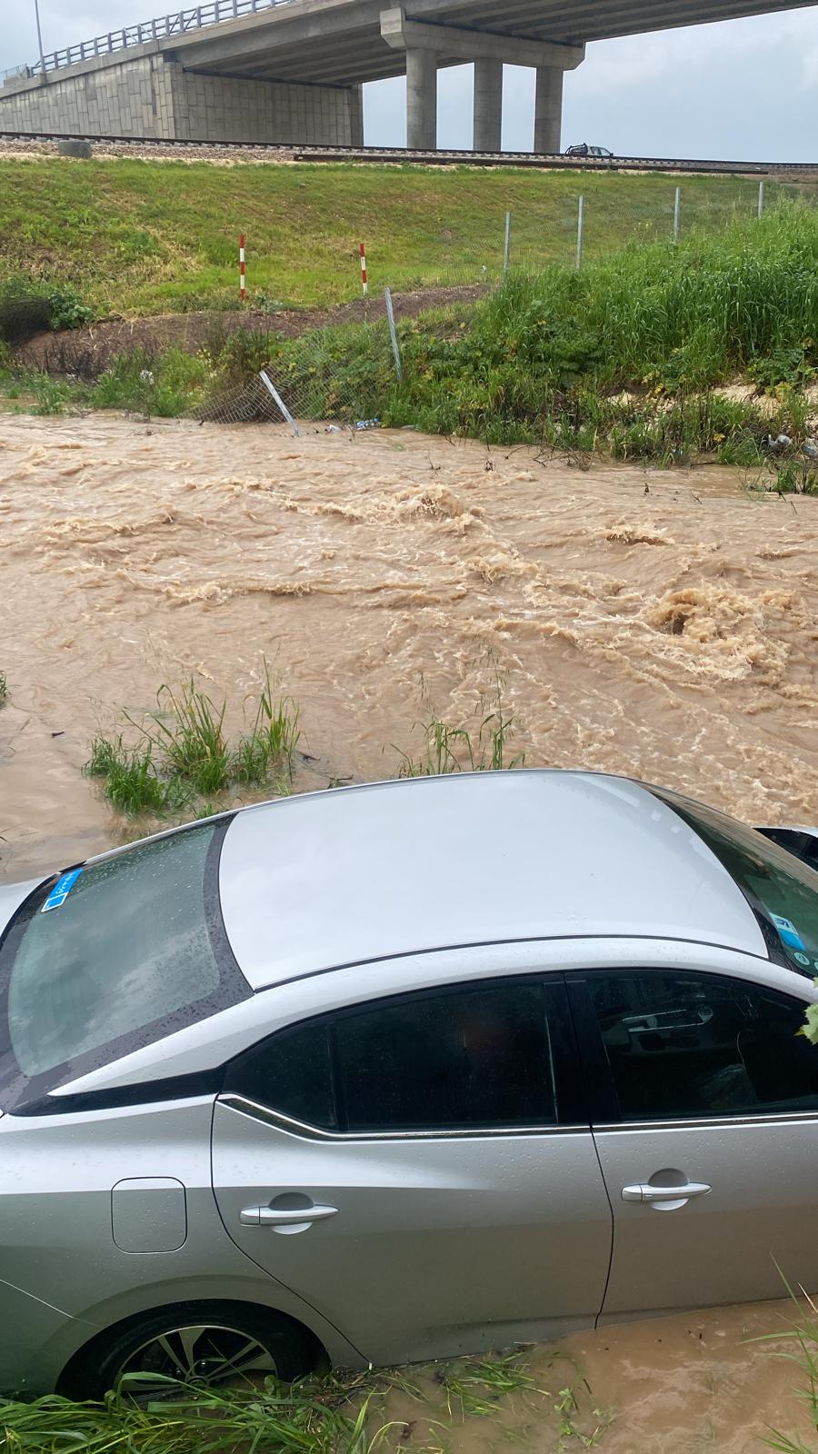 " لدى وصول الطواقم تبين ان شخصا عالق فوق سيارته ".