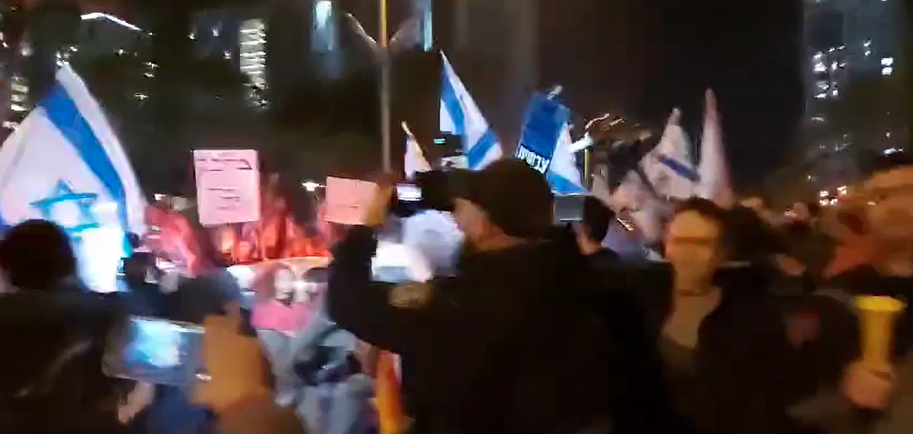 في المقابل في مظاهرة قريبة من ساحة المختطفين تقام ضد الحكومة ، حاول المتظاهرون النزول الى شارع بيجن وقامت الشرطة بمنعهم ، وفي قيساريا تم اعتقال 4 متظاهرين جلسوا على الشارع وأغلقوا مدخل المدينة .