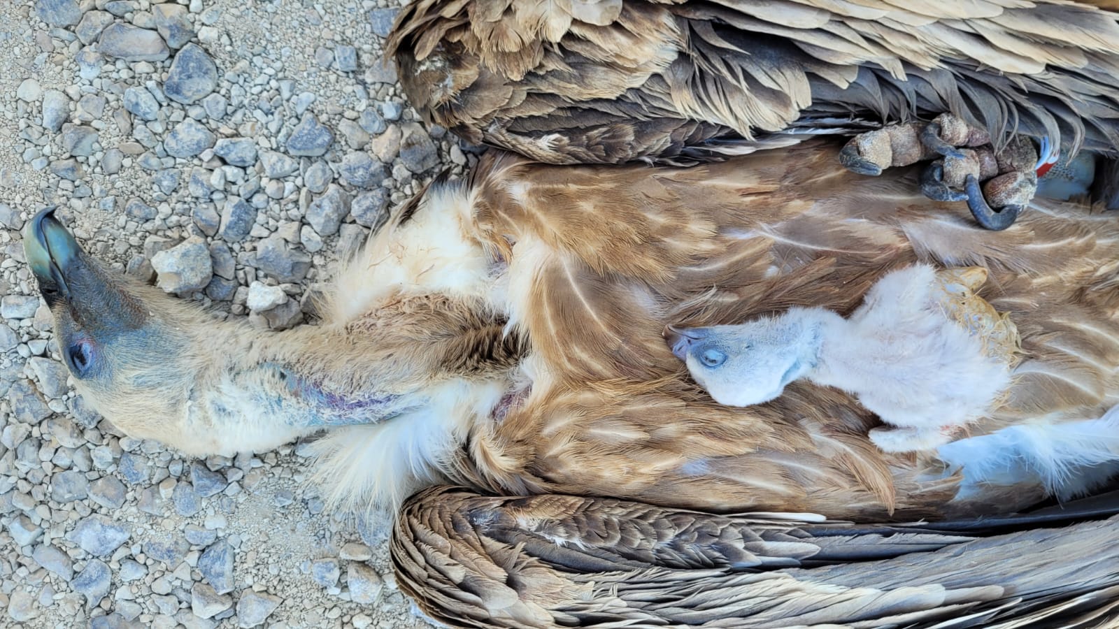 وجاء من سلطة الطبيعة : " بناءً على تحديد النسور النافقة خلال هذا الأسبوع، خرج مفتشو سلطة الطبيعة والحدائق لفحص حالة النسور التي نفقت والمتواجدة في منطقة وادي عقب، وبعد مراقبة العش لعدة ساعات ، لم يظهر النسر أي حركة وكان واضحًا أن هناك ضحية أخرى للتسمم ، نظرًا للاشتباه بوجود بيضة أو نسر صغير في العش، تم استدعاء متطوعي وحدة إنقاذ جبل النقب للتدخل ومحاولة إنقاذ ما يمكن إنقاذه . تحت الريش، اكتشف المتطوع صغير نسر يبلغ من العمر عدة أيام، ولم ينجُ هو ايضا " .